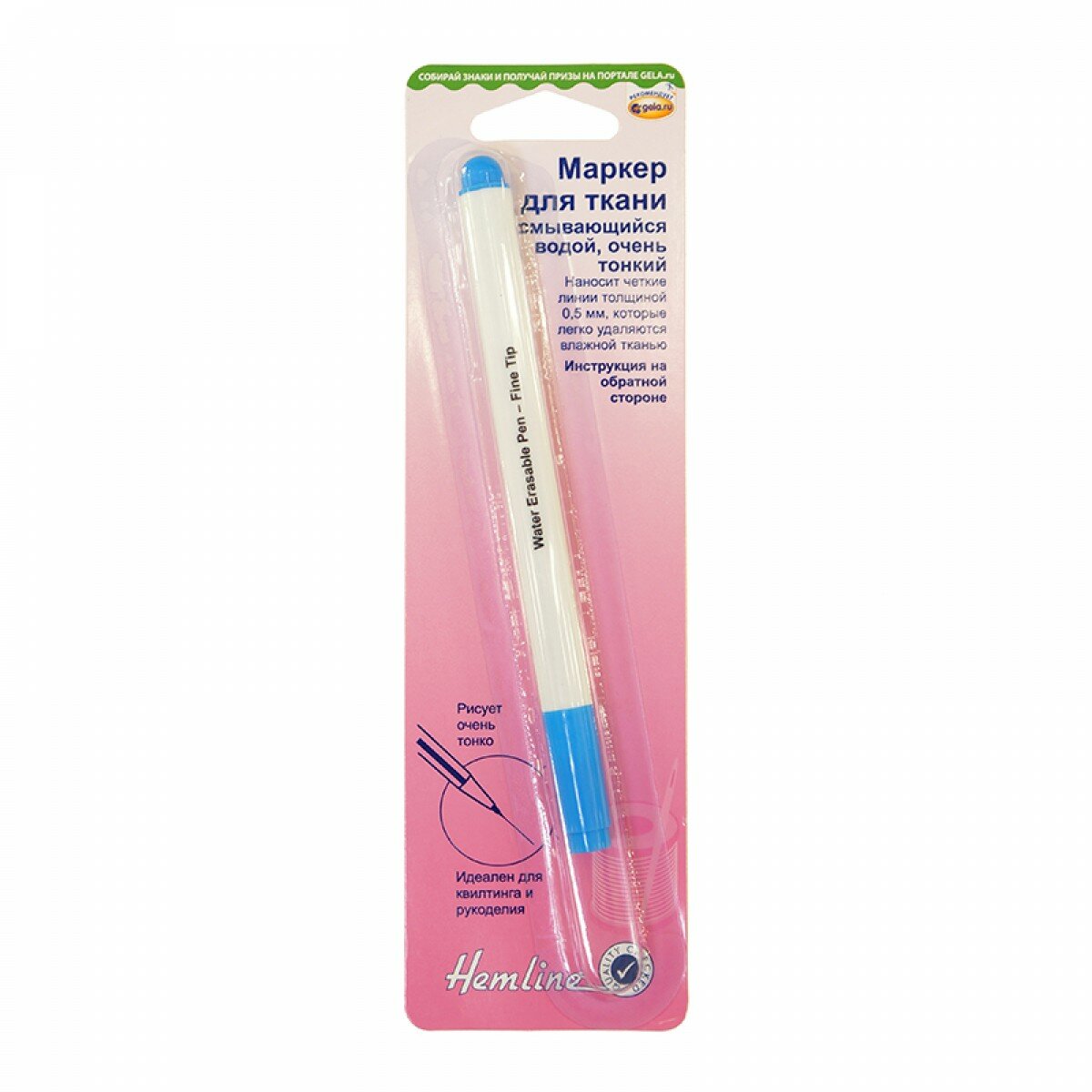 295F Маркер д/ткани смываемый водой голубой супертонкий Hemline