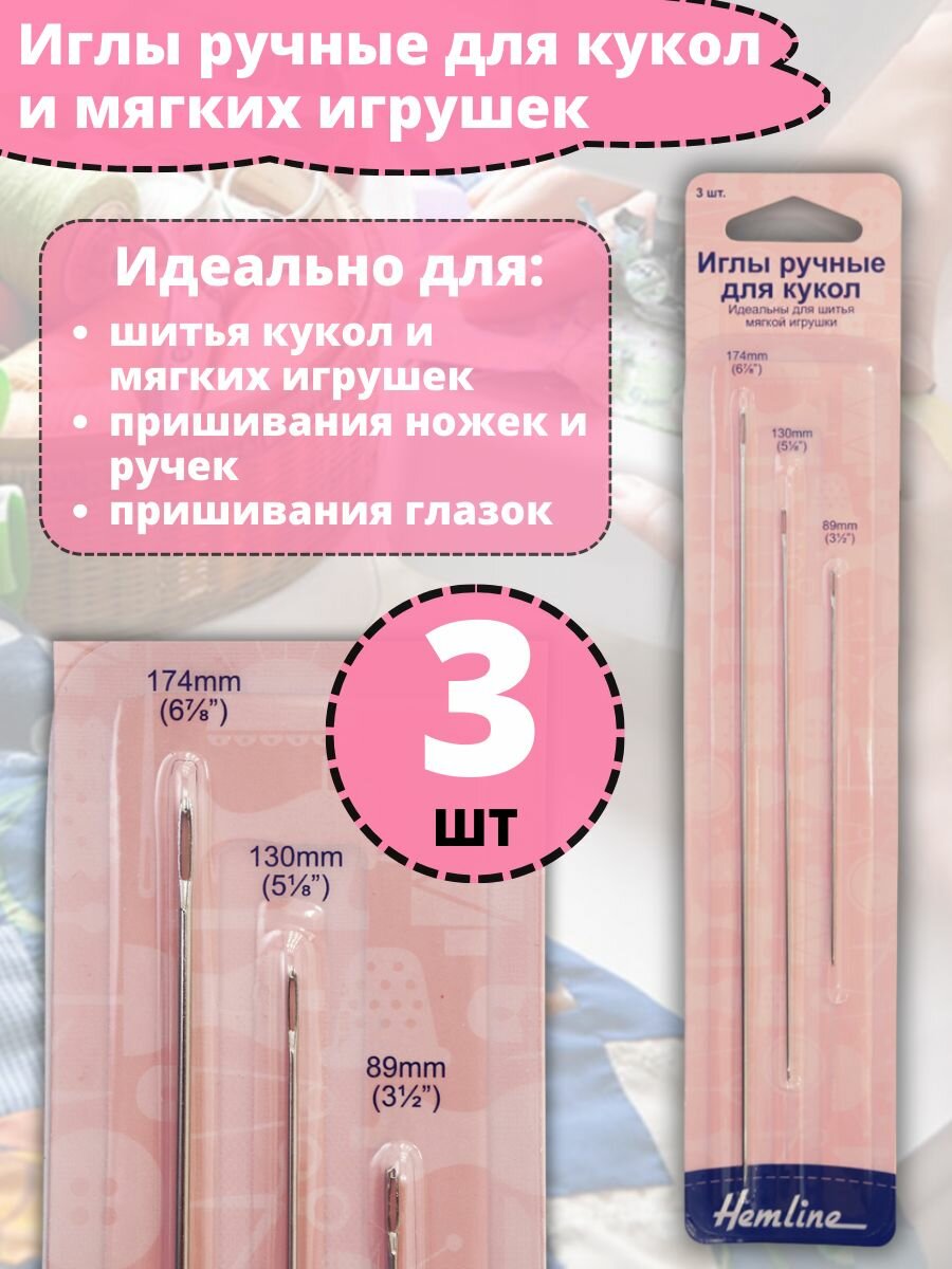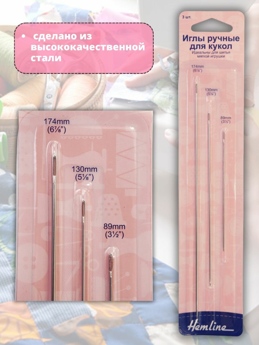 213 Иглы ручные для кукол металл 3 шт Hemline