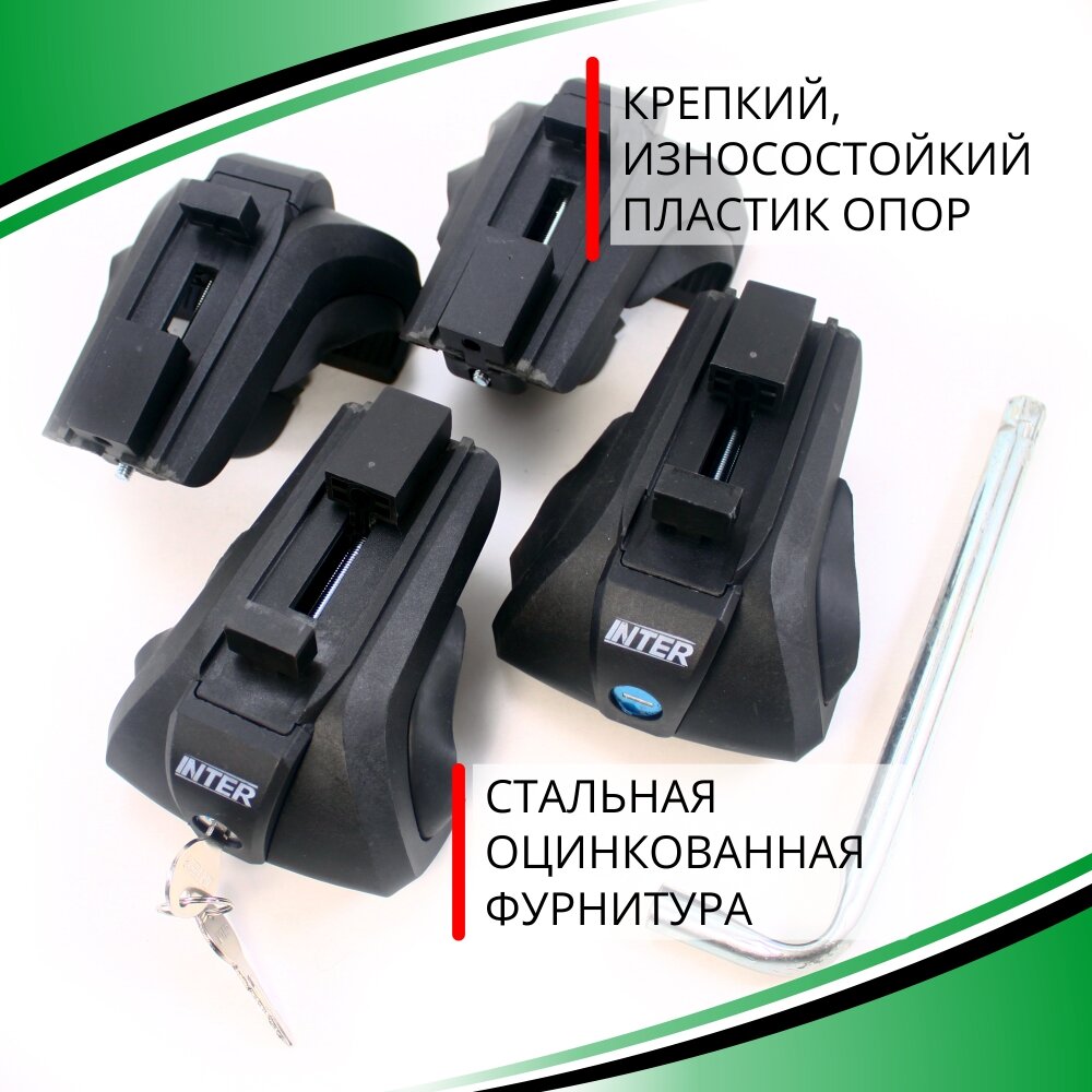 ● Багажник на рейлинги автомобиля Форд Турнео Курьер пикап (на рейлинги автомобиля с просветом) 2014-, на рейлинги с просветом. Комплект опор багажника с замком и прямоугольными дугами 120 см.● Мягкие накладки и сложная форма зажимов опор плотно обхватывают рейлинг не повреждая его.● Выбирая багажник на рейлинги со стальными поперечинами, вы приобретаете надежность и отличный внешний вид за небольшие деньги!======================совместимость:● Автобагажник на крышу для рейлингов совместим со всеми автобоксами, велосипедными креплениями, креплениями для лыж и сноубордов, каяками и каноэ.======================простая И быстрая установка И демонтаж:● Для установки понадобится только торцевой ключ (идет в комплекте) и канцелярский нож (нет в комплекте) для подрезания резинок;● Нет необходимости ничего модифицировать и сверлить: просто установите опоры багажника с поперечинами на ваши штатные рейлинги Турнео Курьер Форд;● Для демонтажа багажника нужно всего лишь снять заглушки поперечин и ослабить винты, крепящие багажник;======================100% безопасность:● Пластиковая оплетка поверх стальных поперечин (дуг), защитит груз от царапин;● Опоры багажника (стойки, упоры) имеют уплотнительные резинки, которые сберегут рейлинги от царапин;● Все багажные системы INTER (Интер) проходят обязательную сертификацию и соответствуют требованиям технического регламента таможенного союза;● Данный багажник на рейлинги Форд Турнео Курьер пикап не требует регистрации в ГИБДД;● Высокая грузоподъемность в 75 кг багажника на крышу, при фактически более высокой грузоподъемности;======================долговечный:● Модели с металлическим прямоугольным профилем имеют толстую пластиковую оплетку, предожраняющую сталь от попадания воды;● Высококачественный ударопрочный пластик выдерживает большой диапазон температур, устойчив к ультрафиолету, различным солям и другим активным реагентам, что важно при эксплуатации зимой;● Все металлические детали оцинкованы;● Гарантия производителя – 1 год;