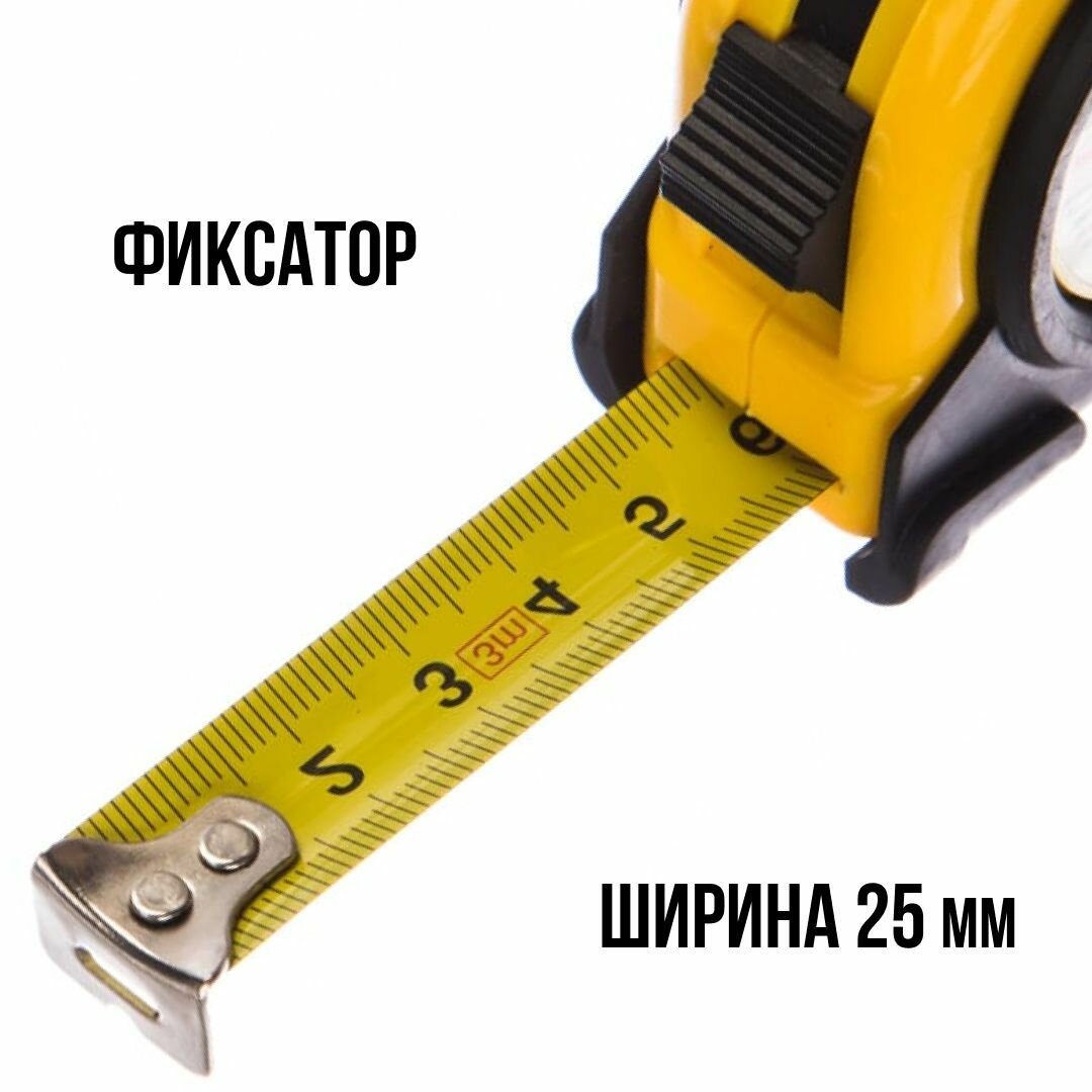 Предназначена для измерения длины. Стальная лента, прорезиненный корпус. Упаковка: пластиковый подвес.