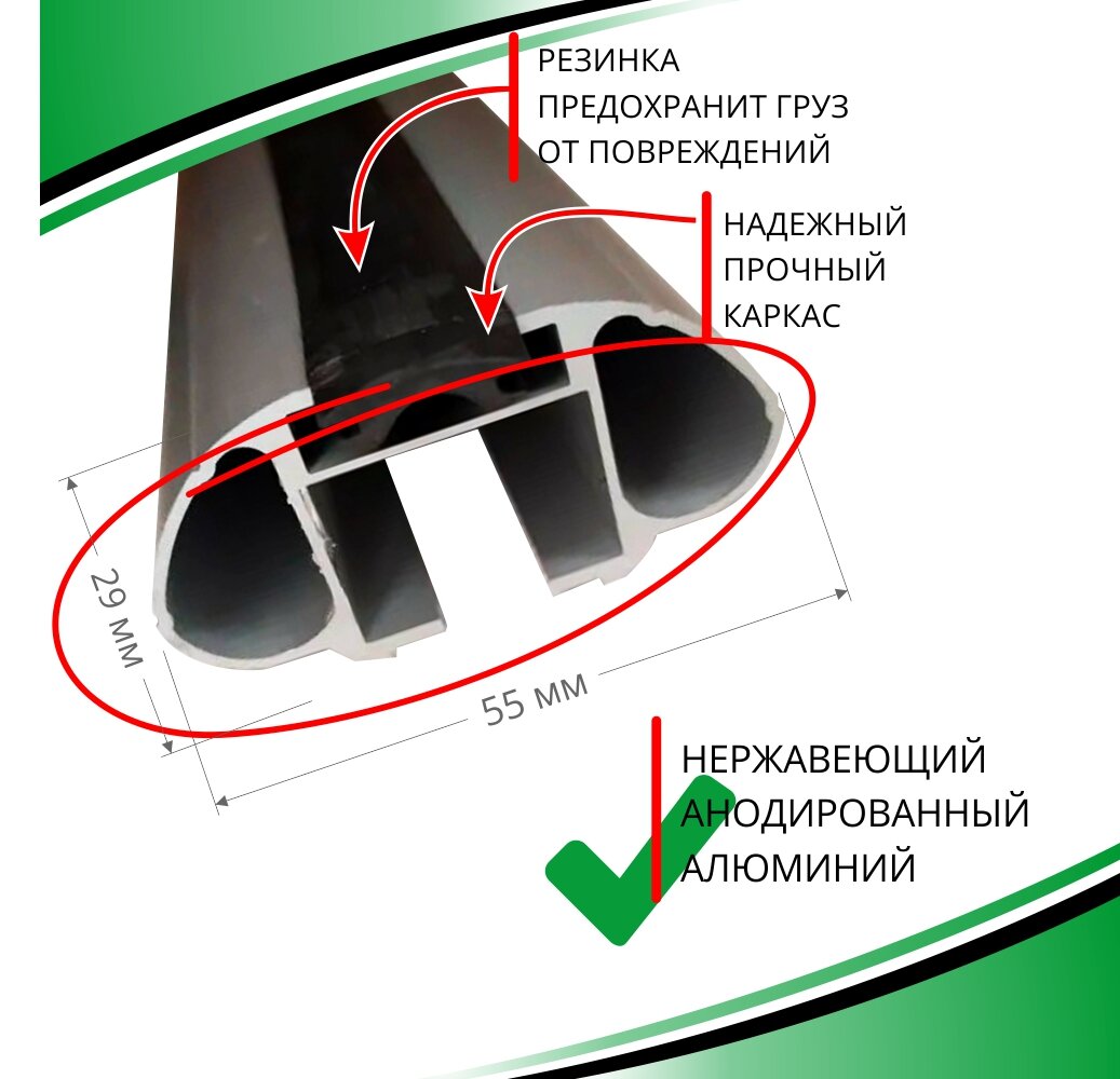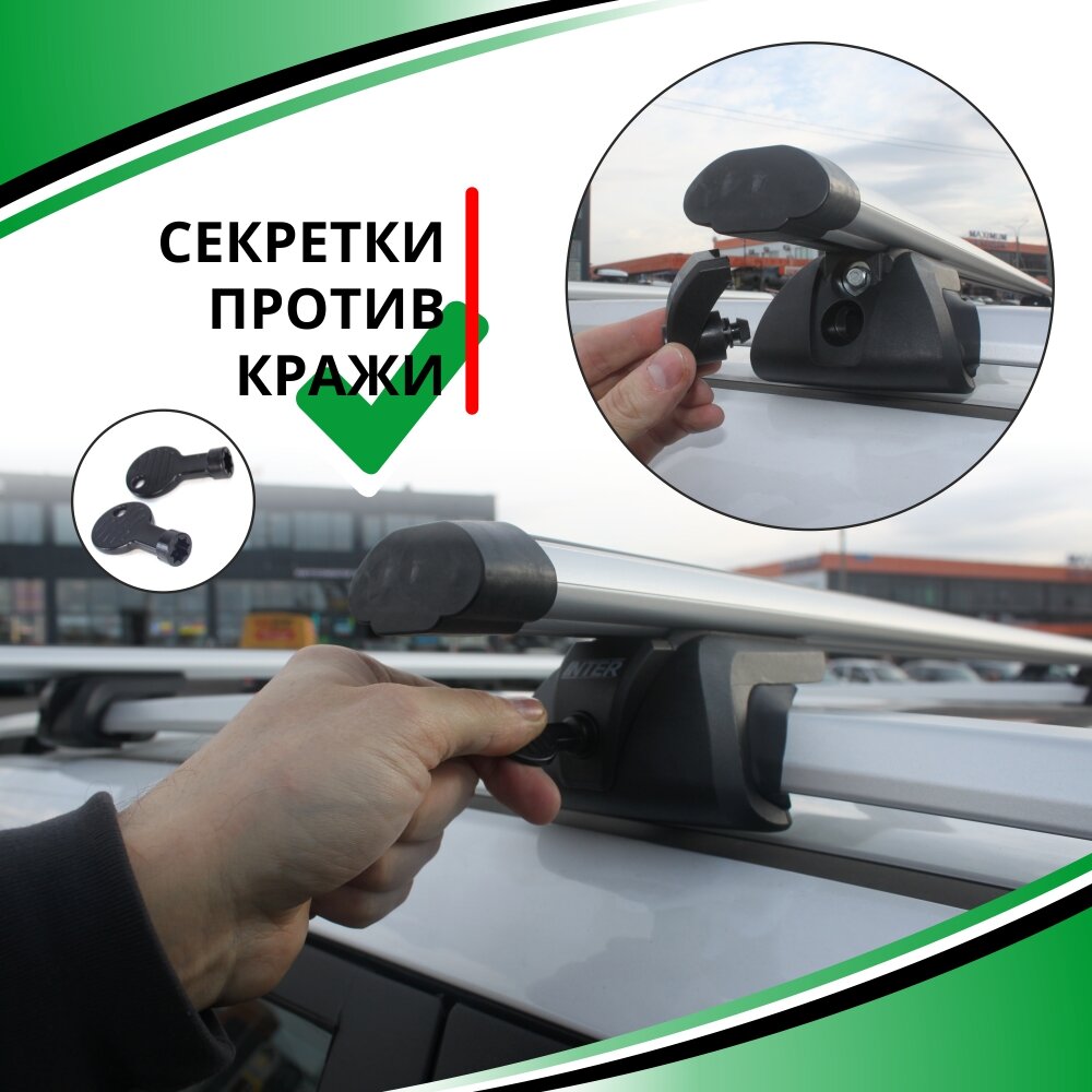 ● Багажник на рейлинги автомобиля Шевроле Круз универсал (на рейлинги автомобиля с просветом) 2012-. Комплект опор багажника с секреткой и аэродинамическими дугами 120 см.● Мягкие накладки и сложная форма зажимов опор плотно обхватывают рейлинг не повреждая его.● Выбирая багажник на рейлинги с аэродинамическими алюминиевыми поперечинами, вы приобретаете надежность, низкий уровень шума и отличный внешний вид!======================совместимость:● Автобагажник на крышу для рейлингов совместим со всеми автобоксами, велосипедными креплениями, креплениями для лыж и сноубордов, каяками и каноэ.======================простая И быстрая установка И демонтаж:● Для установки понадобится только торцевой ключ (идет в комплекте) и канцелярский нож (нет в комплекте) для подрезания резинок;● Нет необходимости ничего модифицировать и сверлить: просто установите опоры багажника с поперечинами на ваши штатные рейлинги Круз Шевроле;● Обратите внимание, на необходимость установки уплотнительных резинок (идут в комплекте) снизу перекладин. Их назначение - снижения уровня аэродинамического шума во время езды;● Для демонтажа багажника нужно всего лишь вытащить заглушки поперечин и ослабить 4-е винта, крепящие багажник;======================100% безопасность:● Резинки, устанавливающиеся сверху поперечин (дуг), защитят ваш груз от возможных царапин;● Опоры багажника (стойки, упоры) имеют уплотнительные резинки, которые сберегут рейлинги от царапин;● Все багажные системы INTER (Интер) проходят обязательную сертификацию и соответствуют требованиям технического регламента таможенного союза;● Данный багажник на рейлинги Шевроле Круз универсал не требует регистрации в ГИБДД;● Высокая грузоподъемность в 75 кг багажника на крышу, при фактически более высокой грузоподъемности;======================долговечный:● Антикоррозийный в течении всего срока службы! Алюминевые поперечины сверху покрыты защитным анодированным покрытием.● Высококачественный ударопрочный пластик выдерживает большой диапазон температур, устойчив к ультрафиолету, различным солям и другим активным реагентам, что важно при эксплуатации зимой;● Все металлические детали оцинкованы;● Гарантия производителя – 1 год;