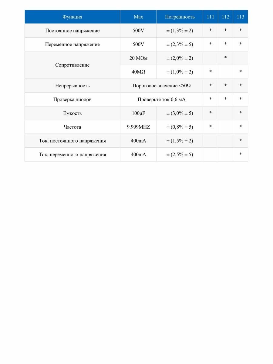 | Макс. измеряемое напряжение | 500 |