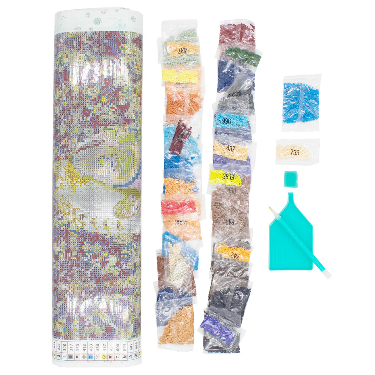 | Комплектация | полотно-схема с клеевым слоем с условными обозначениям; инструкция; пластиковое блюдце; пинцет; упакованные стразы |