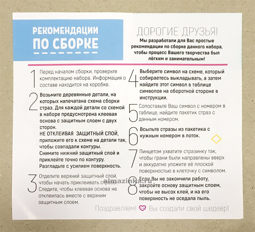 | В набор входит | деревянная основа, клеевая основа с защитным слоем, инструкция, акриловые камни-стразы, стилус/пинцет, треугольное блюдце, магнит, веревочка. |