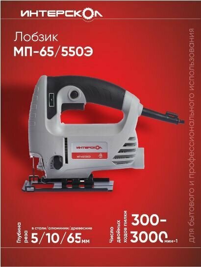 | ИНТЕРСКОЛ МП-65/550Э — легкий и недорогой электрический лобзик для выполнения самых различных задач | от криволинейного реза по дереву до распиловки металлических прутков. Инструмент отличается удобством и простотой использования |