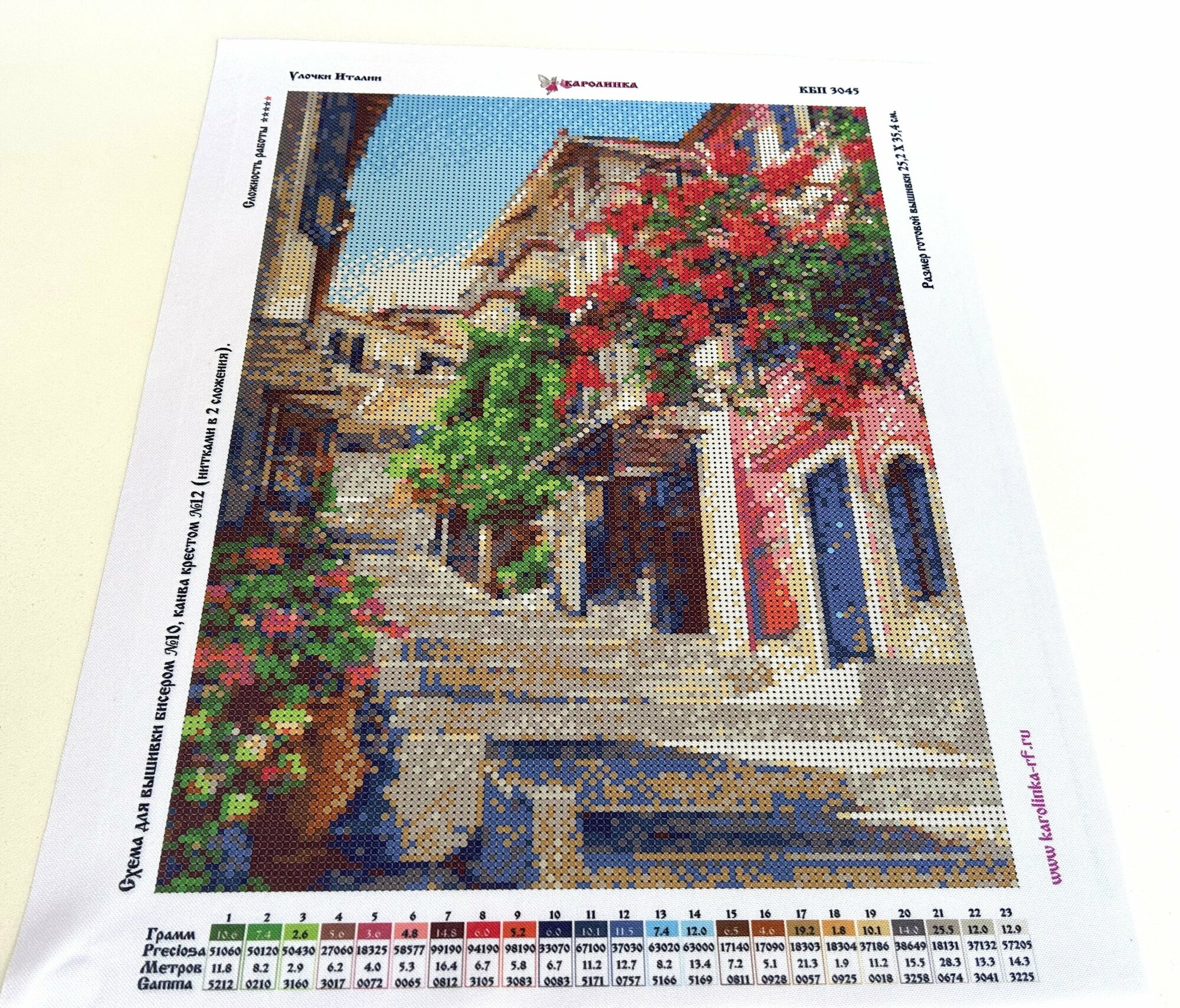 Ткань - схема с готовым рисунком подойдет как для начинающих любителей рукоделия, так и для опытных рукодельниц. Такая уловка поможет им выполнить работу качественно и быстро. Наши работы можно вышивать бисером, крестом или смешанной техникой. Основа для вышивки - габардин, дублированный флизелином. КБП - 3045 Улочки ИталииОснова для вышивки бисером и крестомполная зашивкаК рисунку-схеме прилагается :Инструкция по вышивке смешанной техникой(бисер/крест)Цветовая гамма дана в номерах бисера Preciosa(вес в граммах) и ниток Gamma(метрах в 2 сложения)