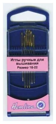 283G.1822 Иглы для вышивания с закруглённым кончиком в пластиковом контейнере №18 - 22 6шт Hemline (размер: №18-22)