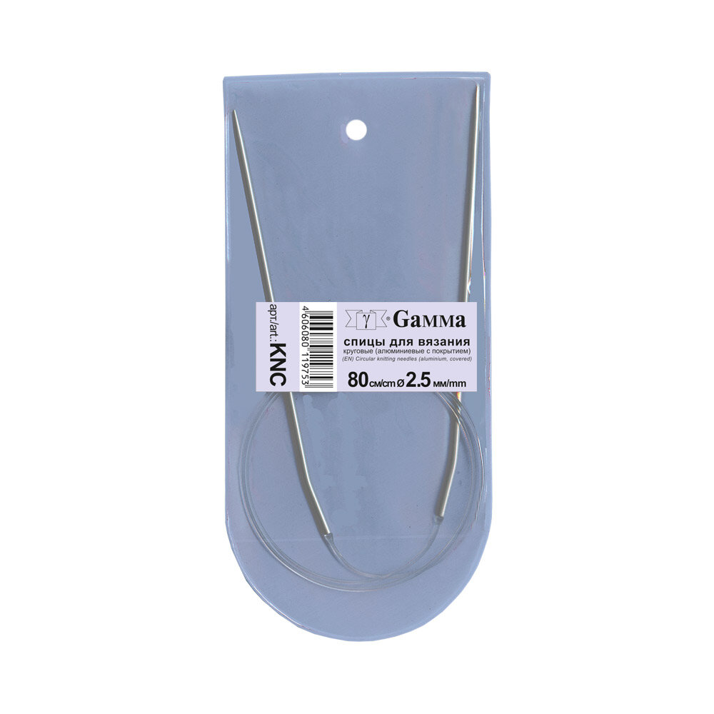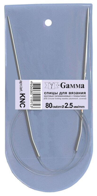Металлические спицы «GAMMA» имеют покрытие, благодаря, которому петли хорошо скользят по поверхности спиц. Спицы прочные, легкие, гладкие, удобные в использовании. Кончики спиц закругленные, гладкие и ровные. С помощью круговых спиц выполняют детали, не имеющие швов. Так как вес изделия лучше распределяется именно на таких спицах, то ими очень удобно работать. Короткими круговыми спицами вяжут бейки горловины, воротники-гольф, длинными спицами можно вязать по кругу целые модели.