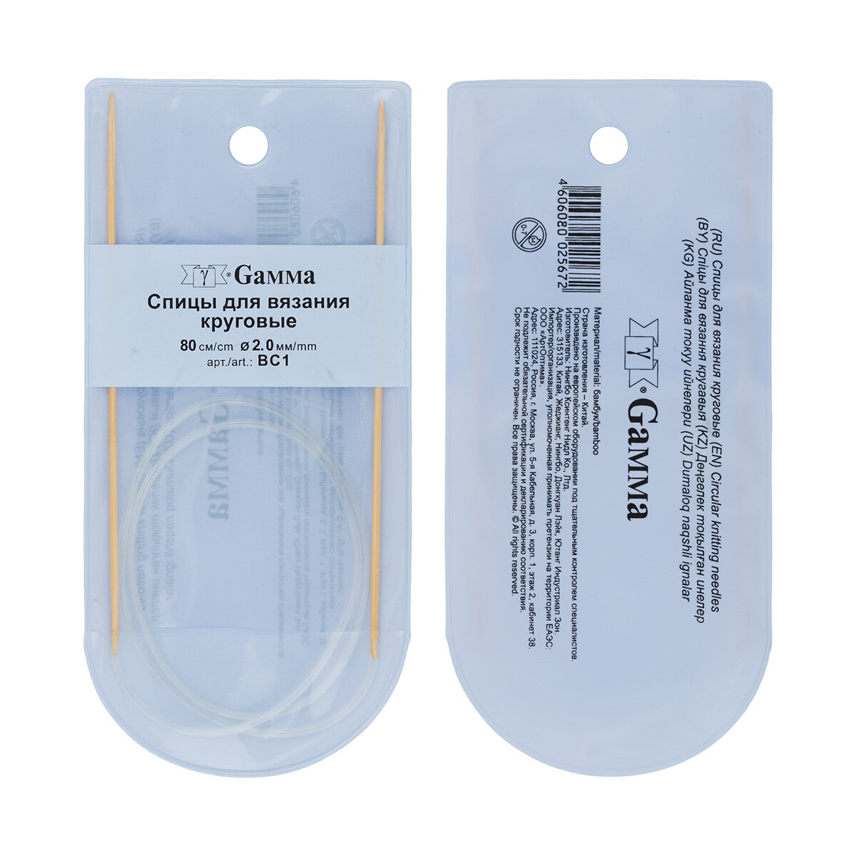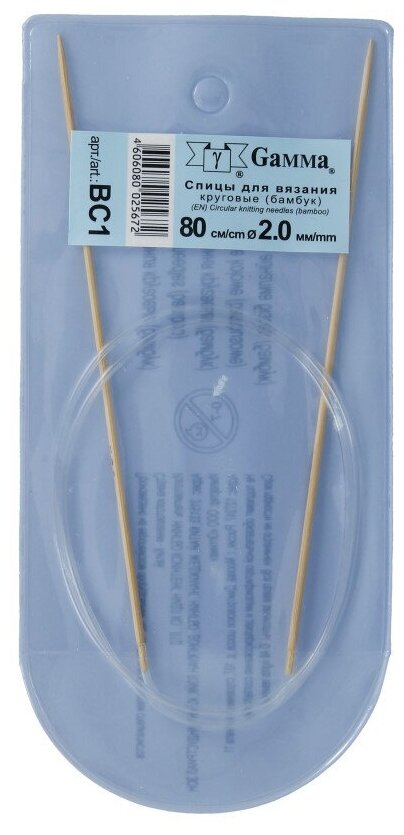 Спицы GAMMA круговые BC1 бамбук d 2.0 мм 80 см 1 шт . Спицы круговые "GAMMA" BC1 бамбук d 2.0 мм 80 см 1 шт Круговые бамбуковые спицы «GAMMA» покрыты специальным гладким покрытием, благодаря, этому петли легко скользят по спицам. Спици соединены друг с другом гибкой леской. С помощью круговых спиц выполняют детали, не имеющие швов. Так как вес изделия лучше распределяется именно на таких спицах, ими очень удобно работать.