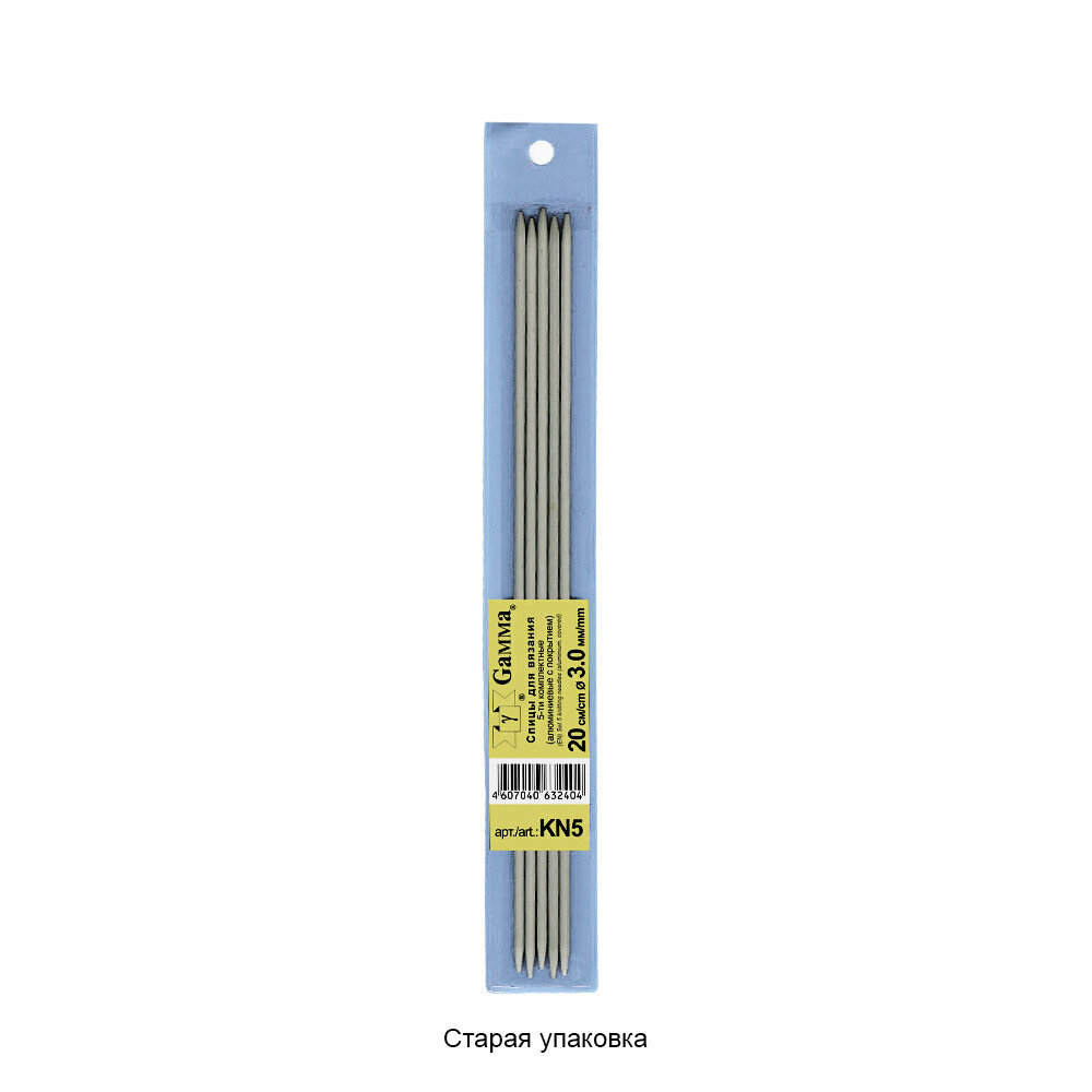 Металлические спицы «GAMMA» имеют покрытие, благодаря, которому петли хорошо скользят по поверхности спиц. Спицы прочные, легкие, гладкие, удобные в использовании. Кончики спиц закругленные, гладкие и ровные. Спицы KN5 предназначены для вязания шапочек, варежек и носков. Сделаны из алюминия, покрытие из тефлона.