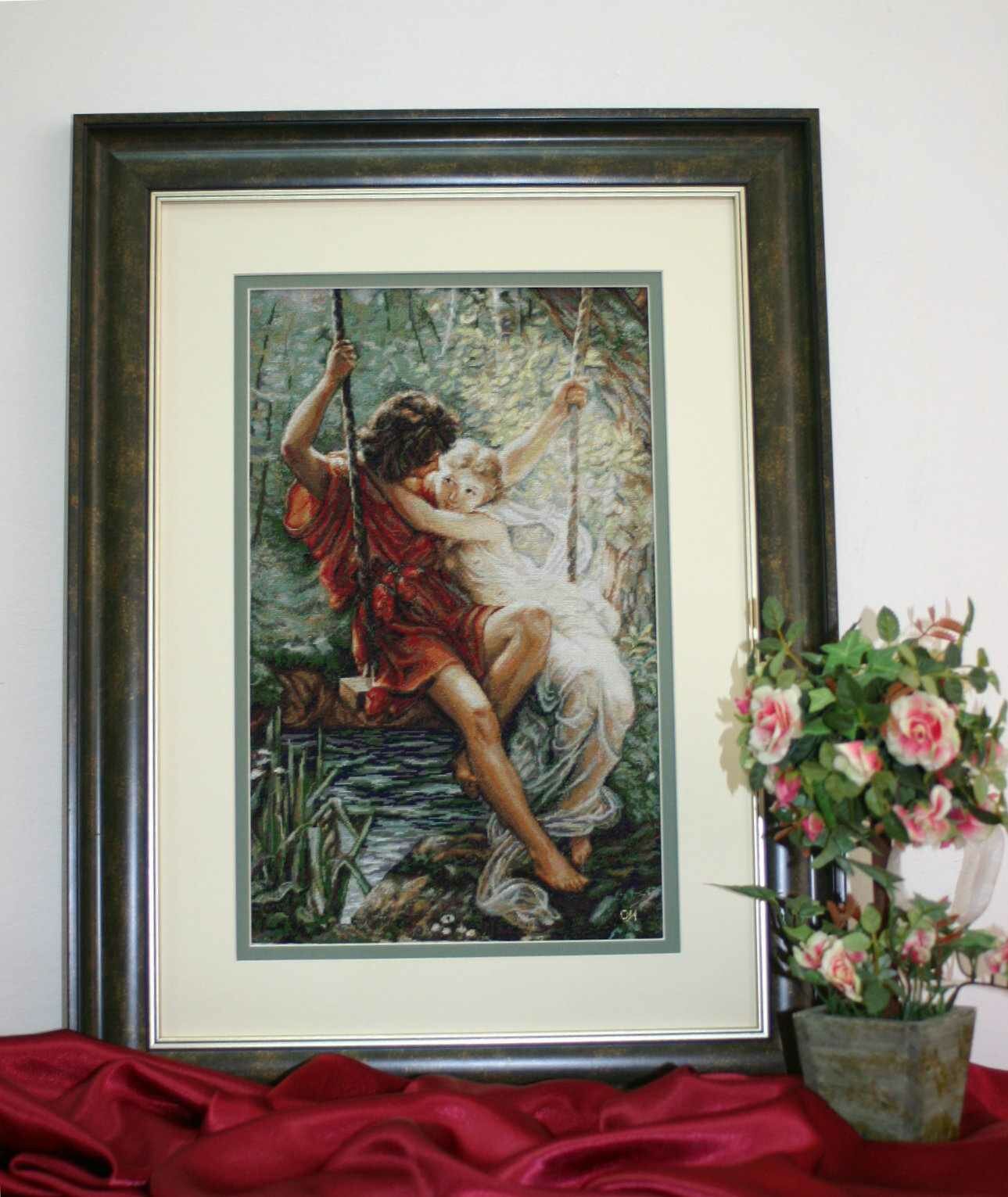 Техника: Счетный крест (Counted Cross Stitch) Размер: 36,5х59,5 см. В состав каждого набора входит: канва для вышивания Zweigart Aida 18 (ткань разграничена на клетки по 10 пунктов, что существенно облегчает работу вышивальщицы), хлопковые нити мулине фирмы Anchor (разобранные на органайзере), черно-белая символьная схема, игла, инструкция. Рамка и паспарту в комплект не входят. Обратите внимание: из-за индивидуальных настроек вашего монитора возможны расхождения в точности передачи цветов.