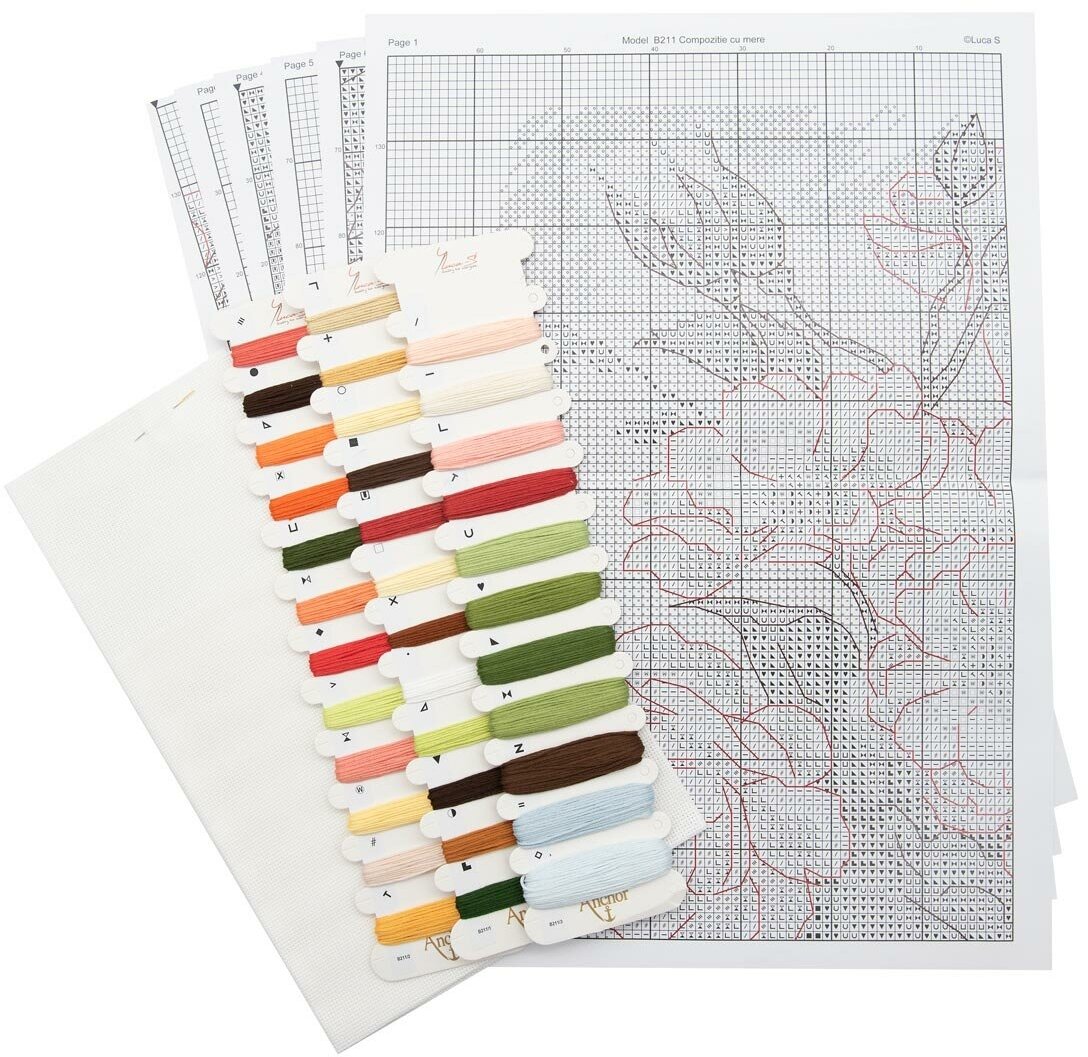 | В набор входит | канва Aida 18 Zweigart белого цвета, хлопковое мулине Anchor 34 цвета, игла, черно-белая символьная схема, инструкция |