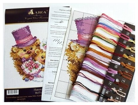 В наборе: канва Aida 14, хлопковые мулине, цветная схема, игла, инструкция.