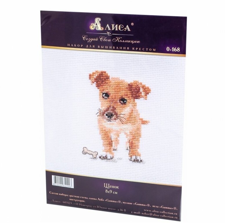 Вышивание - популярное и увлекательное хобби, которое дарит радость и умиротворение. Набор для вышивания - самый удобный вариант вышивок, как для начинающих, так и для опытных мастеров. Ведь набор содержит все необходимые материалы для создания настоящего шедевра. Отличный результат гарантирован! Вышивке всегда можно найти практическое применение. А вышитая собственноручно готовая картина станет отличным подарком близкому человеку. Она будет радовать долгие годы, даря любовь и тепло. Набор для вышивания "Алиса" 0-168 "Щенок" 8 х 9 см. Тип ниток: хлопковые. Заполнение: Частичное. Количество цветов: 12. Схема: Цветная. Тема: Животные. Техника исполнения: Счетный крест. Тип канвы/ткани: К04 Aida №14 "Gamma". Цвет канвы/ткани: белый. Размер готовой работы: 8 x 9 см.