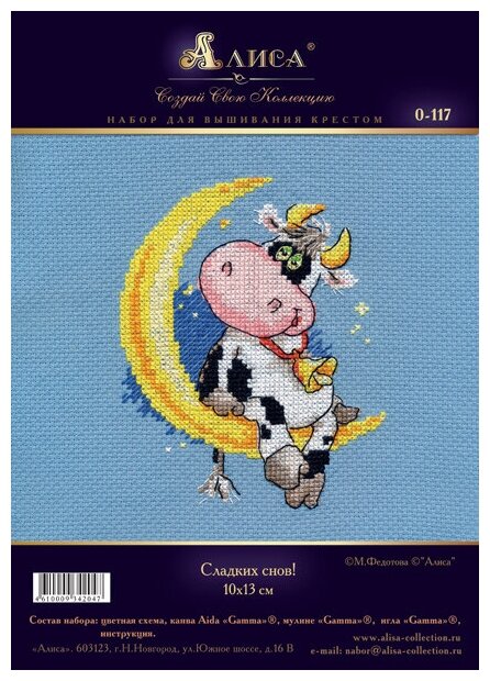 Набор для вышивания "Сладких снов". Размер готовой вышивки 10х13 см -13 цветов. В набор входит: Канва Aida 14 белая, Мулине Гамма 100% хлопок, разобранное на органайзере, 2 иглы, инструкция, символьная схема со слабой цветовой тонировкой.Набор для вышивания крестиком станет замечательным вариантом для домашнего рукоделия и отличным подарком для бабушки, сестры, мамы или подруги. Канву удобно натягивать на пяльцы, она прочная и износостойкая. Мулине изготовлено из хлопкового волокна, нити прочные и имеют красивые оттенки, которые не потускнеют со временем при воздействии солнечных лучей. Разобраны на органайзере для вашего удобства, они будут храниться в упорядоченном виде, и вы всегда найдете нужное. Удобная схема, напечатанная на матовой бумаге со слабой цветовой тонировкой позволит без труда создавать креативную вышивку. Картину с продуманным сюжетом оценят все любители творческих хобби. Вышивка как развивающая поделка понравится детям, она будет положительно влиять на мелкую моторику и вкус у ребенка. Оформленную картину можно преподнести как презент на новогодние праздники и день рождения, юбилей и 8 марта, день всех влюбленных и просто так без повода. Понравится девочкам и девушкам, и женщинам всех возрастов. Так же придётся по вкусу мужчинам и мальчикам.