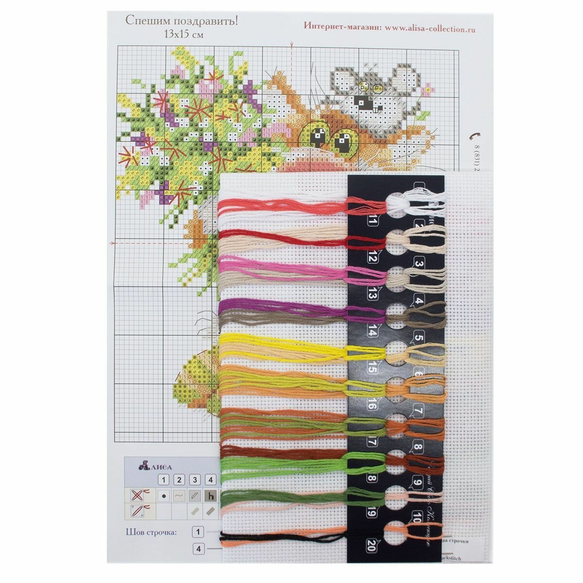 Набор для вышивания "Спешим поздравить!". Размер готовой вышивки 13х15 см -20 цветов. В набор входит: Канва Aida 14 белая, Мулине Гамма 100% хлопок, разобранное на органайзере, 2 иглы, инструкция, символьная схема со слабой цветовой тонировкой.Набор для вышивания крестиком станет замечательным вариантом для домашнего рукоделия и отличным подарком для бабушки, сестры, мамы или подруги. Канву удобно натягивать на пяльцы, она прочная и износостойкая. Мулине изготовлено из хлопкового волокна, нити прочные и имеют красивые оттенки, которые не потускнеют со временем при воздействии солнечных лучей. Разобраны на органайзере для вашего удобства, они будут храниться в упорядоченном виде, и вы всегда найдете нужное. Удобная схема, напечатанная на матовой бумаге со слабой цветовой тонировкой позволит без труда создавать креативную вышивку. Картину с продуманным сюжетом оценят все любители творческих хобби. Вышивка как развивающая поделка понравится детям, она будет положительно влиять на мелкую моторику и вкус у ребенка. Оформленную картину можно преподнести как презент на новогодние праздники и день рождения, юбилей и 8 марта, день всех влюбленных и просто так без повода. Понравится девочкам и девушкам, и женщинам всех возрастов. Так же придётся по вкусу мужчинам и мальчикам.