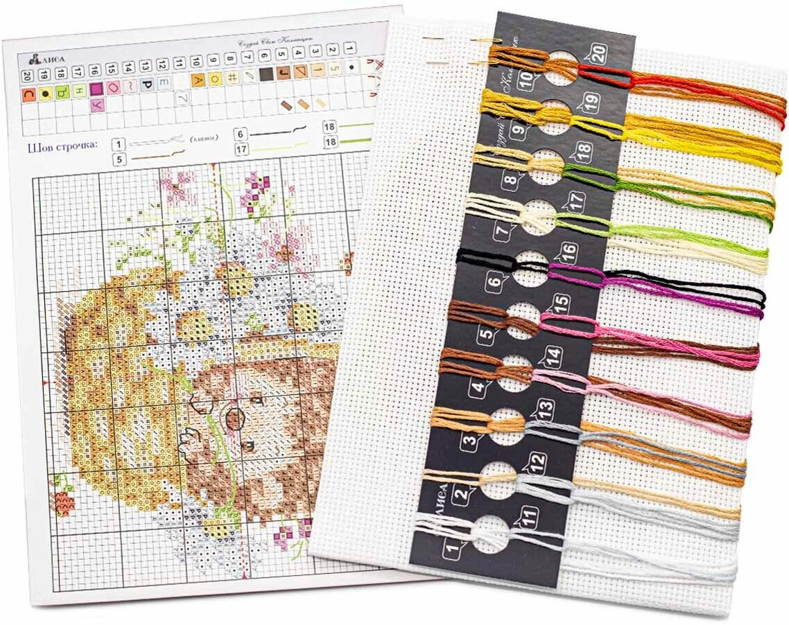 Набор для вышивания "Ежик в ромашках". Размер готовой вышивки 13х11 см -20 цветов. В набор входит: Канва Aida 14 белая, Мулине Гамма 100% хлопок, разобранное на органайзере, 2 иглы, инструкция, символьная схема со слабой цветовой тонировкой.Набор для вышивания крестиком станет замечательным вариантом для домашнего рукоделия и отличным подарком для бабушки, сестры, мамы или подруги. Канву удобно натягивать на пяльцы, она прочная и износостойкая. Мулине изготовлено из хлопкового волокна, нити прочные и имеют красивые оттенки, которые не потускнеют со временем при воздействии солнечных лучей. Разобраны на органайзере для вашего удобства, они будут храниться в упорядоченном виде, и вы всегда найдете нужное. Удобная схема, напечатанная на матовой бумаге со слабой цветовой тонировкой позволит без труда создавать креативную вышивку. Картину с продуманным сюжетом оценят все любители творческих хобби. Вышивка как развивающая поделка понравится детям, она будет положительно влиять на мелкую моторику и вкус у ребенка. Оформленную картину можно преподнести как презент на новогодние праздники и день рождения, юбилей и 8 марта, день всех влюбленных и просто так без повода. Понравится девочкам и девушкам, и женщинам всех возрастов. Так же придётся по вкусу мужчинам и мальчикам.