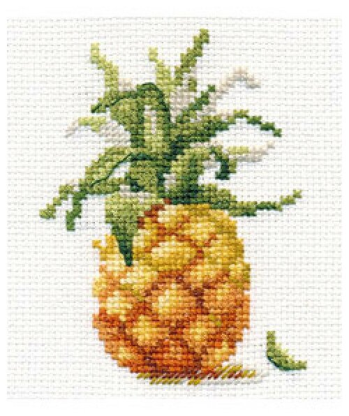 Вышивание - популярное и увлекательное хобби, которое дарит радость и умиротворение. Набор для вышивания - самый удобный вариант вышивок, как для начинающих, так и для опытных мастеров. Ведь набор содержит все необходимые материалы для создания настоящего шедевра. Отличный результат гарантирован! Вышивке всегда можно найти практическое применение. А вышитая собственноручно готовая картина станет отличным подарком близкому человеку. Она будет радовать долгие годы, даря любовь и тепло. Набор для вышивания "Алиса" 0-165 "Ананас" 8 х 10 см. Тип ниток: хлопковые. Заполнение: Частичное. Количество цветов: 13. Схема: Цветная. Тема: Фрукты. Техника исполнения: Счетный крест. Тип канвы/ткани: К04 Aida №14 "Gamma". Цвет канвы/ткани: белый. Размер готовой работы: 8 x 10 см.
