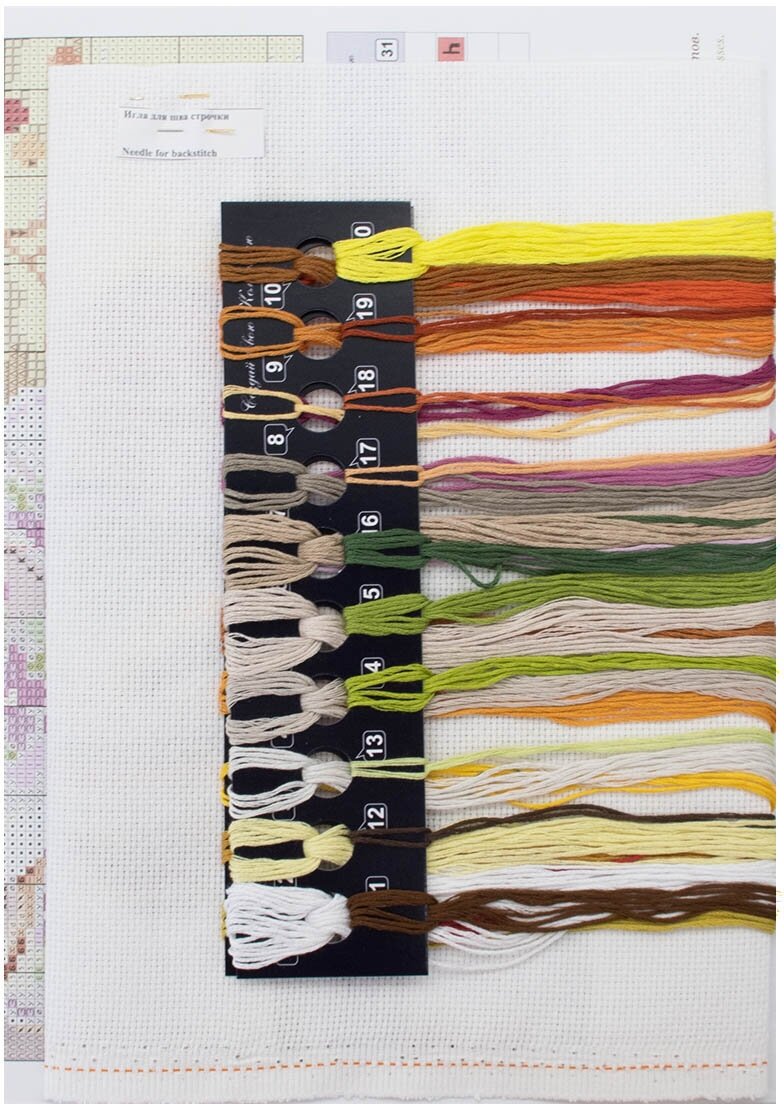 Секрет отличной вышивки – в продуманной схеме, качественных материалах, терпении и аккуратности мастерицы. Следуйте инструкции, выкладывайте равномерные стежки, и постепенно из-под вашей иглы начнет 'проступать' картина с тонко проработанными деталями, плавной цветопередачей. Оформите готовую вышивку в багет или пяльцы, и она станет украшением интерьера. В работе используется канва Aida 16 каунта – этот материал позволяет вышивать небольшими стежками и прекрасно подходит для схем с подробной детализацией. Совет: если вам не хватает опыта, сделайте разметку канвы, ориентируясь по схеме. Разметка поможет вам быстрее закончить вышивку и избежать возможных ошибок. В наборе: канва Aida 16, хлопковые мулине, цветная схема, игла, инструкция. Количество цветов: 31. Размер: 18х18 см.