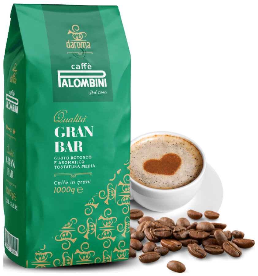 Натуральный жареный кофе в зернах Palombini Gran Bar. Мягкий, выразительный вкус и насыщенная пенка - особенности Gran Bar. Это совершенный вкус настоящего итальянского эспрессо! Рекомендуется для приготовления: эспрессо, капучино, ристретто. Состав смеси: 90% арабика, 10% робуста.
