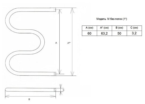 | Форма полотенцесушителя | змеевик(М-образный) |