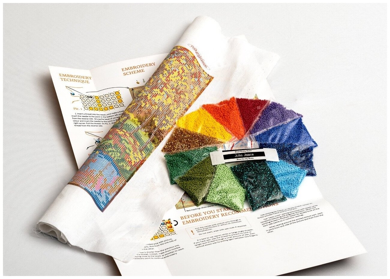 | В набор входит | Канва (основа для вышивания) с фотореалистичным рисунком и схемой),цветная схема и подробные, специально разработанные инструкции, ювелирный бисер (обращаем ваше внимание, что ювелирный бисер по размеру меньше обычного), бисерная игла |