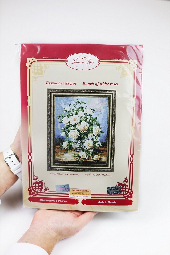 ЛЦ-043 Букет белых роз. Любимые цветы Золотое руно (размер: 43,5×33,8 см)