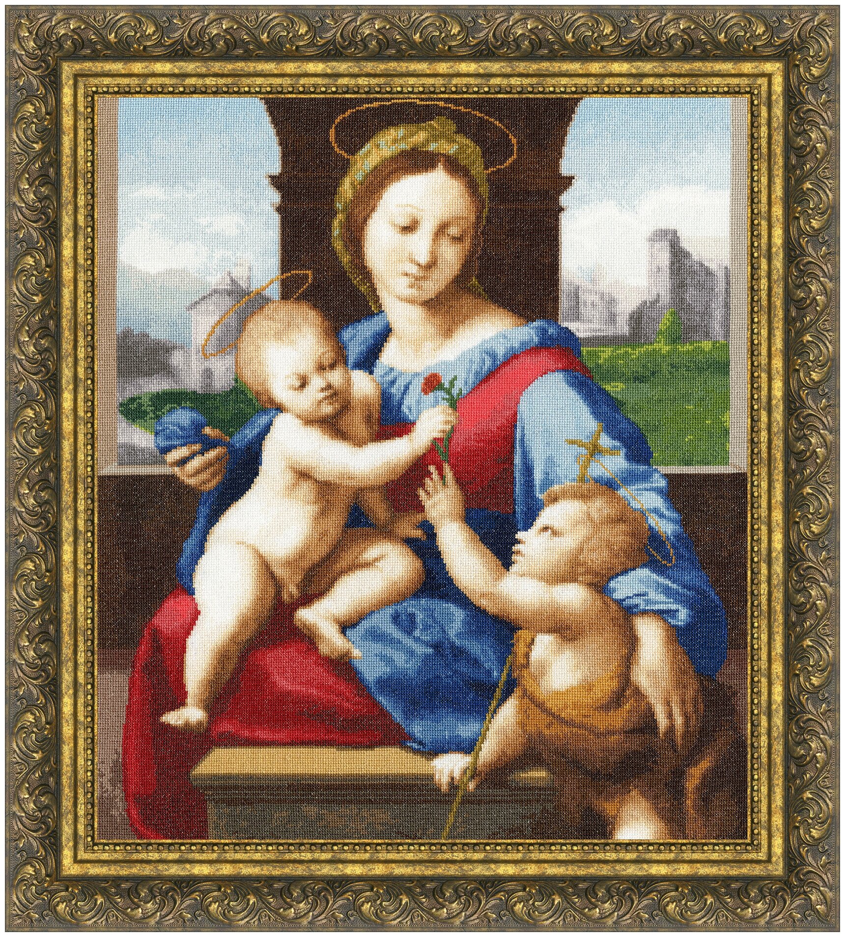 Техника: Счетный крест (Counted Cross Stitch) Размер вышивки: 47,4x41,6 см. В составе набора: канва для вышивания Zweigart Aida 16 (Германия) кремового цвета, нитки хлопковые мулине Maidera (Германия), разобранные на органайзере, игла, черно-белая символьная схема, инструкция. По мотивам картины Рафаэля Санти. Паспарту и рамка в комплект не входят. Обратите внимание: из-за индивидуальных настроек вашего монитора возможны расхождения в точности передачи цветов.