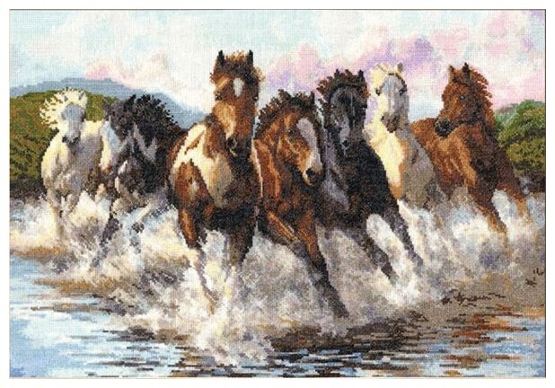 Техника: Счетный крест (Counted Cross Stitch) Размер вышивки: 29х42 см. В составе набора: нитки хлопковые мулине (57 цветов) Мадейра (Германия), которые разобраны и закреплены на органайзере, игла, канва Аида Zweigart (Германия) белого цвета, черно-белая символьная схема, подробная инструкция на русском языке. Паспарту и рамка в комплект не входят.
