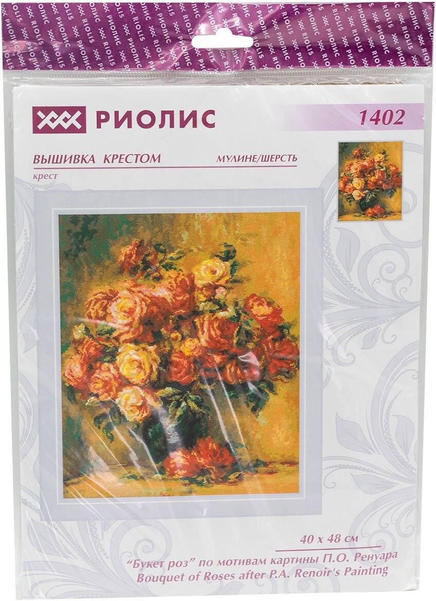 1402 "Букет роз по мотивам картины Пьера Огюста Ренуара" Риолис (Сотвори Сама) (размер: 40х48 см)