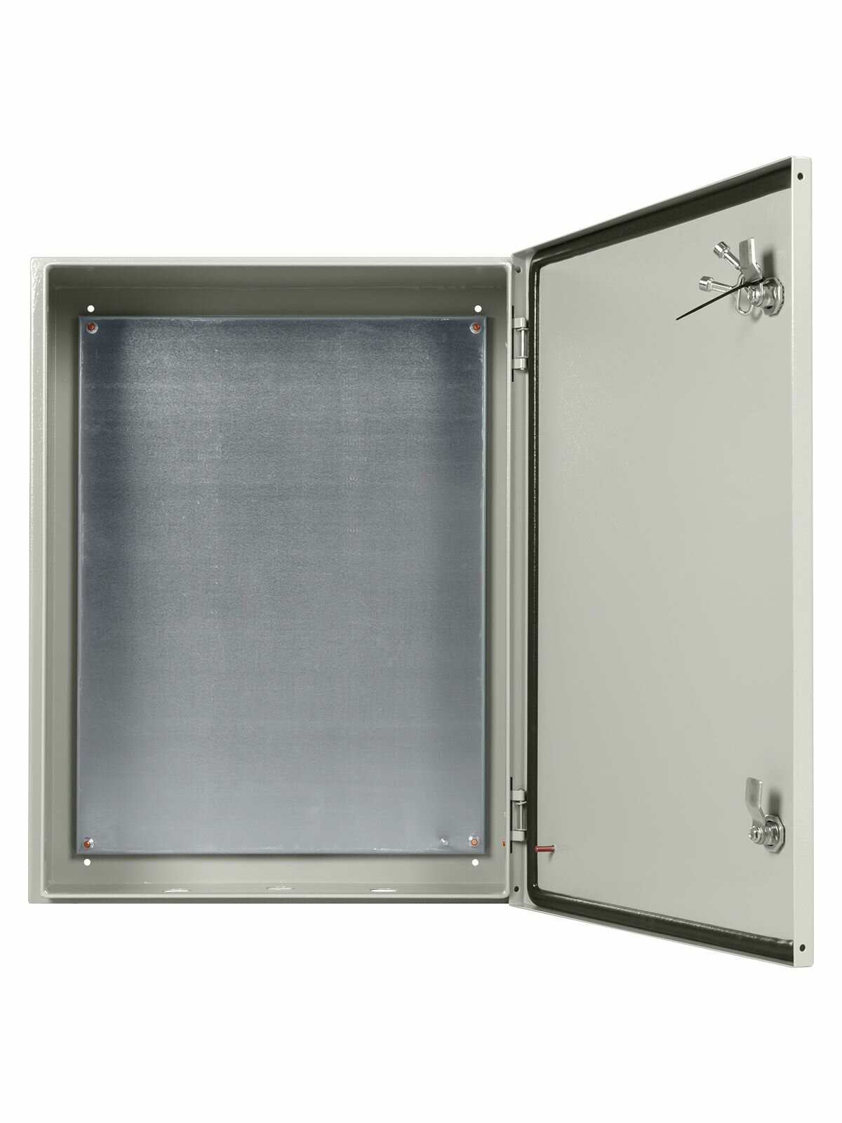 Назначение:Предназначены для сборки электрощитов самого разнообразного назначения (щитов автоматики и управления, силовых щитов, пунктов распределения и т. д.).Преимущества:Широкий модельный ряд. Степень защиты IP31/IP66.Повышенная стойкость к коррозии.Большой набор аксессуаров в комплекте.Специальное наружное покрытие RAL 7032 (для IP66).Конструкция:Оцинкованная монтажная панель 1,2 мм.Элементы заземления на корпусе, дверце и монтажной панели.Полностью проваренные швы (для IP66).Кронштейн для крепления к стене (для IP66).Материалы:Корпус:СтальПокрытие:Текстурированный полиэстеровый порошокУпаковка:Коробка из картона