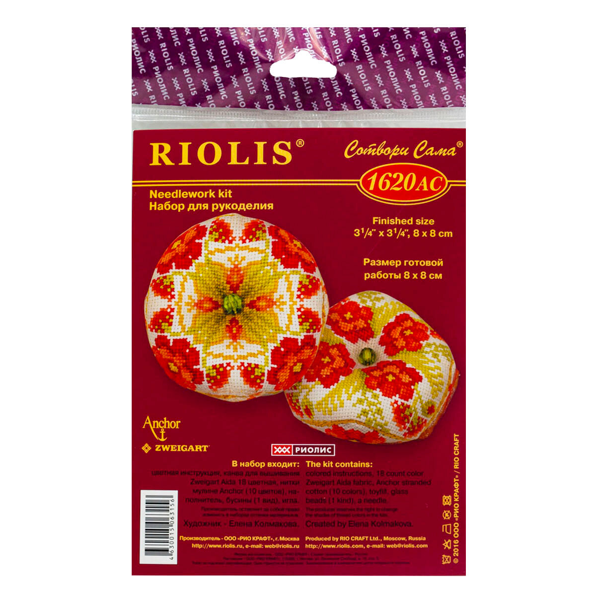 Набор для вышивания известного российского производителя Риолис. В состав набора Риолис обычноно входят: канва Aida Zweigart; нитки шерсть/акрил Safil; игла; цветная схема; инструкция на русском языке; бусины и ленты; Риолис с 1996 года производит наборы для вышивания крестом. За эти годы творческой работы компания значительно расширила свой ассортимент. Для начинающих любителей вышивки Риолис создал марку «Весёлая пчёлка» с небольшими и яркими картинками. Для тех, кто уверенно владеет разными техниками вышивки и рукоделия, будут интересны наборы самой многочисленной серии «Сотвори сама». И ценителям с особыми требованиями к качеству материалов, разработке сюжета, надежности и презентабельности упаковки можно посоветовать остановить свое внимание на Riolis Premium.