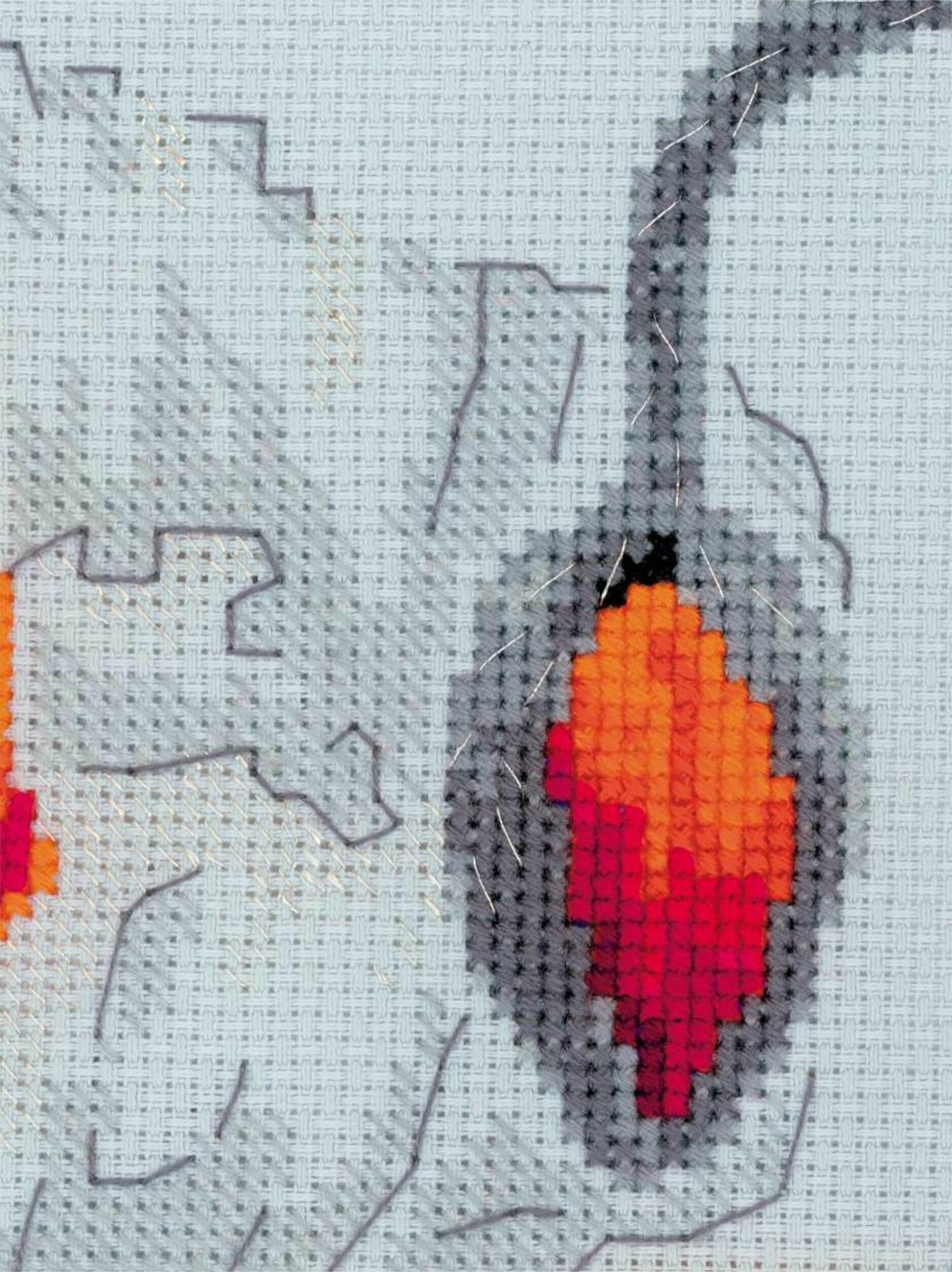 | В набор входит | Канва, нитки мулине Anchor, цветная схема, серебряная нить, бисер, бусины, 2 иглы |
