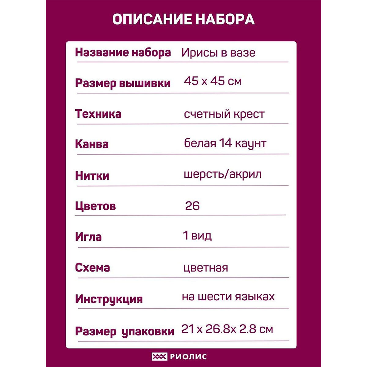 1071 «Ирисы в вазе» Риолис (Сотвори Сама) (размер: 45х45 см)