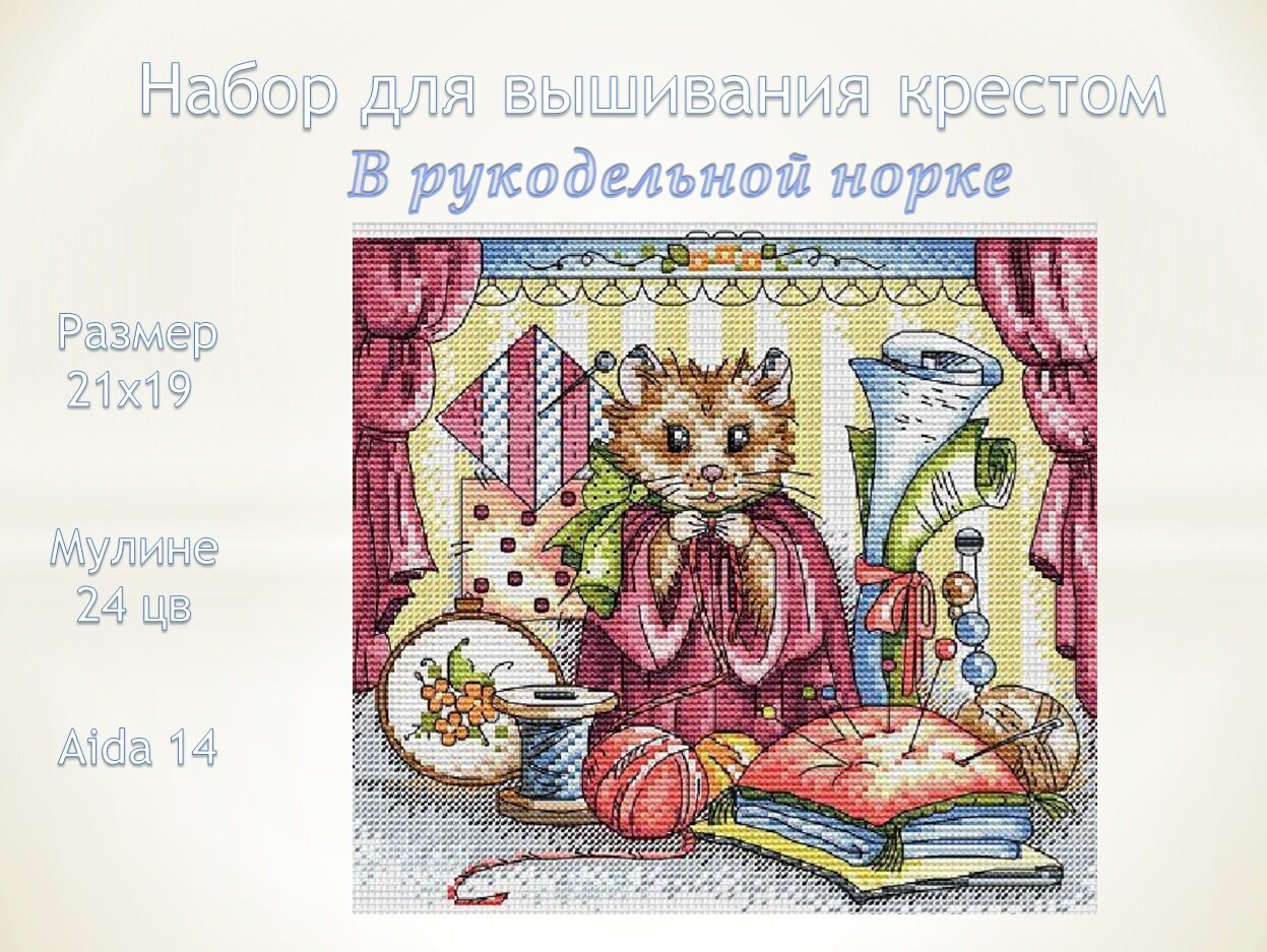 Набор для вышивания крестом "В рукодельной норке" от МП Студия - это прекрасный выбор для тех, кто любит рукоделие и хочет создать уникальное произведение искусства своими руками.Набор включает в себя все необходимые материалы для вышивания: канва Aida 14, хлопковые нитки мулине, игла, схема и инструкция. В комплекте 24 цвета мулине, что позволяет создать яркие и насыщенные оттенки.Вышивка выполняется техникой счетного креста, полукреста, длинного стежка, бэкстича. Это позволяет создавать сложные и красивые узоры, а также дает возможность экспериментировать с различными техниками.Подробная комплектация набора включает в себя нитки мулине из хлопка (24 цвета), канву Aida №14, схему. Все материалы высокого качества, что гарантирует отличный результат.Тематика набора - животные и портреты, что позволяет создавать разнообразные сюжеты.Размер готовой вышивки составляет 21 х 19 см, что делает ее достаточно большой для того, чтобы стать ярким акцентом в интерьере или прекрасным подарком для близких.Набор для вышивания крестом "В рукодельной норке" от МП Студия - это отличный выбор для тех, кто хочет развивать свои творческие способности и создавать уникальные произведения искусства.
