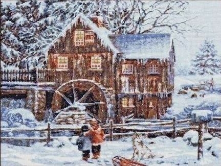 - Обзор набора для вышивания "МЕЛЬНИЦА В СНЕГУ" от фирмы ПАЛИТРА