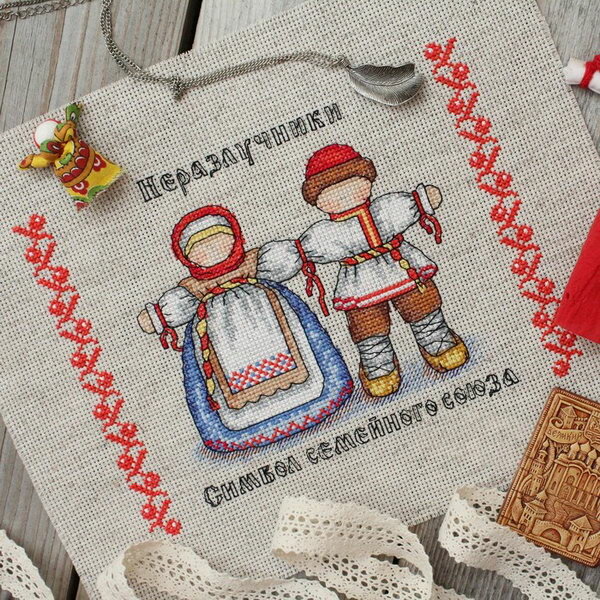 Набор для вышивания крестиком на канве от торговой марки "Жар-птица" "Славянский оберег. Неразлучники"Состав: канва Аида №14 лен, нитки мулине 18 цветов ПНК им. Кирова, игла, двухцветная схема и руководство по вышиванию. Размер готовой работы 21х16 см. Набор для вышивания крестом на канве, с частичным заполнением.Вышивка крестом является одним из увлекательных хобби, завоевавшим симпатии множества людей. Этот популярный вид рукоделия покоряет человеческие сердца тем, что с помощью иглы и ниток можно создавать настоящие шедевры творчества, вызывая восхищение окружающих своими способностями. На самом деле, особенный талант здесь не нужен. Главное, это терпение и трудолюбие, а также желание творить. Вышивать крестиком могут даже дети, к тому же это прекрасно развивает мелкую моторику рук, что само по себе очень полезно. Набор для вышивания крестом станет отличным подарком дочери, маме, сестре, подруге, бабушке! С помощью вышитых крестиком картин Ваш домашний интерьер станет уютным и неповторимым. Кроме того, изделия ручной работы ценятся всегда очень высоко, а значит подарки, сделанные с использованием вышивки крестиком, не останутся незамеченными и займут достойное место в доме тех, кому они предназначены.Это хобби очень увлекательно, если попробовать начать вышивать, то остановиться уже невозможно. Хочется всё время создавать новые интересные работы, чувствуя себя настоящим творцом. Легче и интереснее вышивать по готовым схемам, используя качественные, специально подобранные для этого материалы, как в наборе для вышивки от торговой марки "Жар-птица" "Славянский оберег. Неразлучники", где есть все необходимое - детально проработанная схема для вышивки, льняная канва, высококачественные нитки мулине, прочная гобеленовая игла и инструкция к работе. Данный набор несет большую смысловую нагрузку - кукла объединяет в себе мужскую и женскую фигурки, у которых одна общая рука. Это и есть символ того, что отныне двое будут всегда вместе, поровну разделив между собой все радости и печали, которые им суждено повстречать на долгом жизненном пути. Славяне верили, что такие обереги приносят счастье в дом, а также защищают домашний очаг от недоброжелателей.Радость и польза от такого увлекательного хобби, как вышивка крестиком, превзойдёт все ожидания. Это занятие может наполнить серые будни яркими красками творчества и положительными эмоциями от создания своих авторских работ.Желаем Вам плодотворного творчества!
