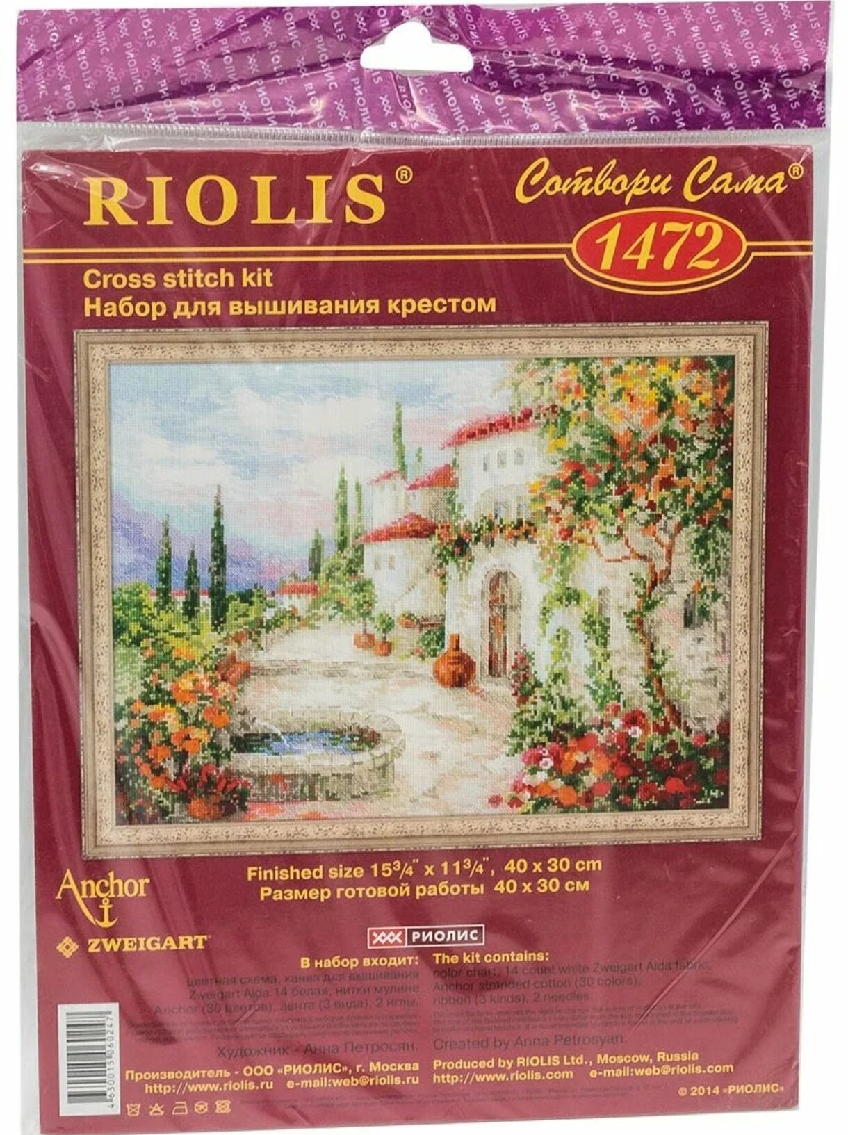 | В набор входит | Канва 14 Aida Zweigart, мулине Anchor, ленты (3 вида), 2 иглы, цветная схема, инструкция |