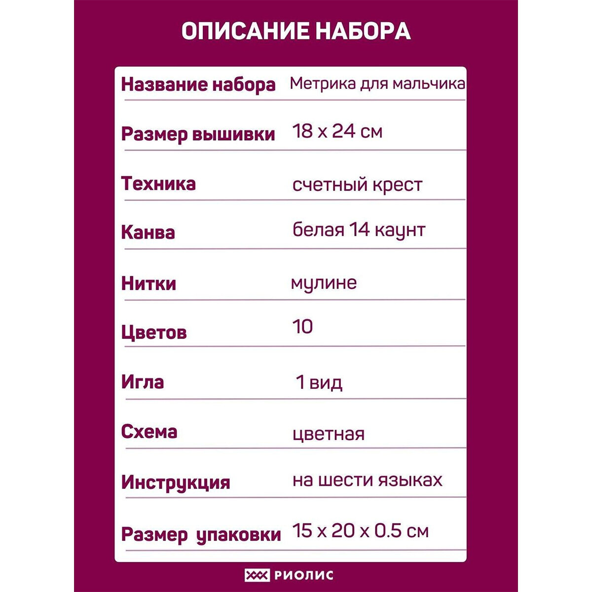 На сегодняшний день товар «1124 «Метрика для мальчика» Риолис (Сотвори Сама) (размер: 18х24 см)» можно купить с кешбеком в 1 магазине: Яндекс.Маркет