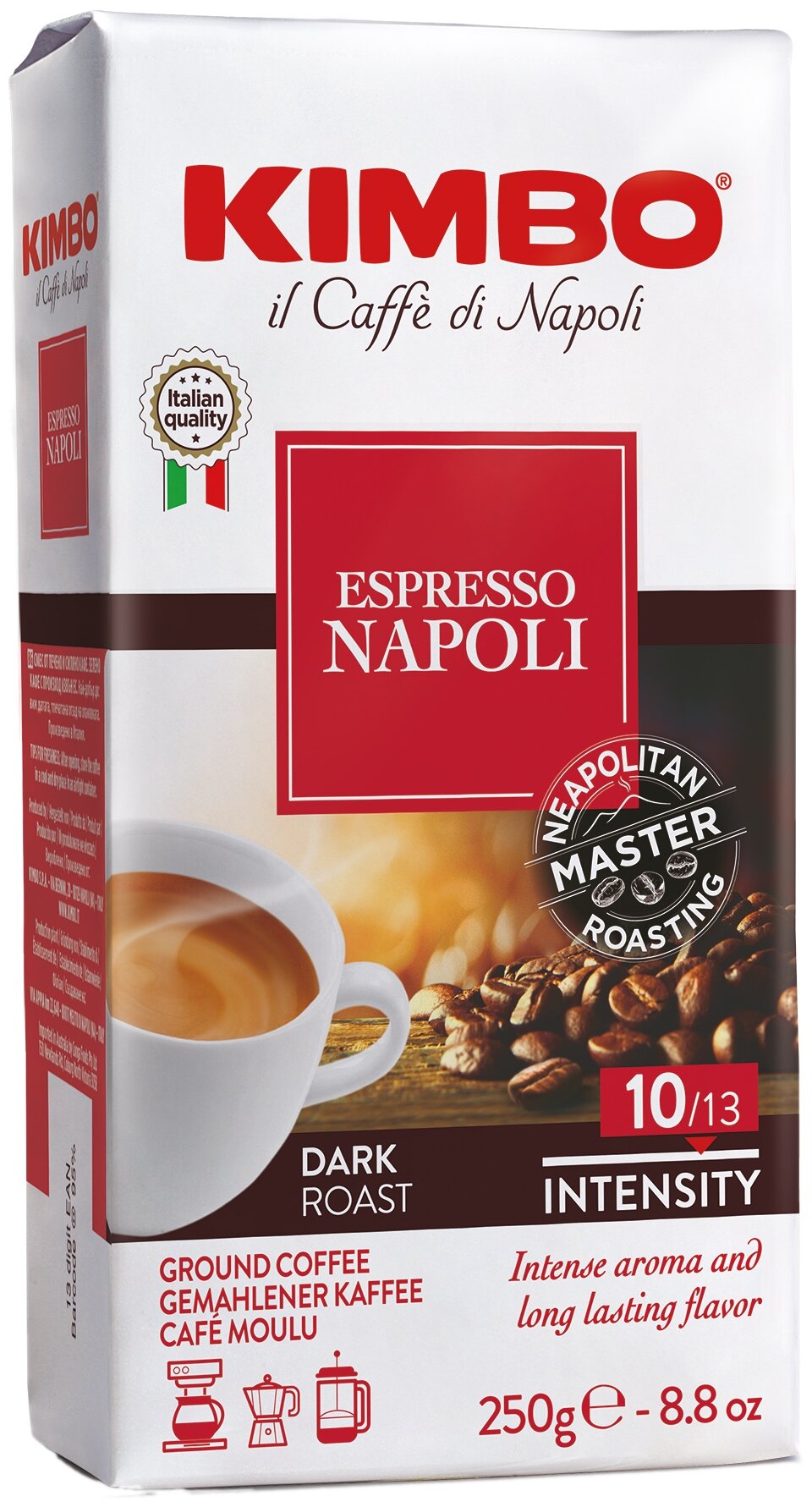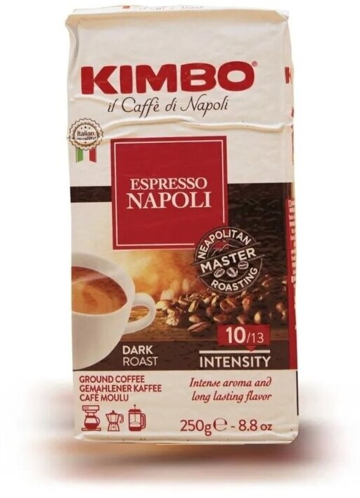 Kimbo Espresso Napoletano (Эспрессо Наполитано) - молотый кофе, смесь лучших сортов арабики и робусты, традиционной неаполитанской обжарки. Обладает интенсивным ярким вкусом, богатым нежным ароматом и и густой плотной крема. Идеален для тех, кто предпочитает настоящий крепкий эспрессо.