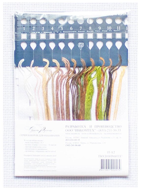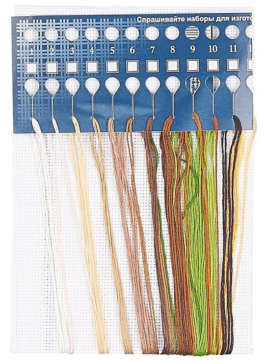 В набор входит | канва Аида 14 (хлопок), хлопковые нитки (18 цветов), цветная символьная схема, игла, инструкция, органайзер с образцами ниток |