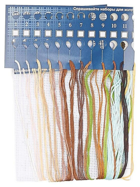 | В набор входит | канва Аида 14 (хлопок), хлопковые нитки (16 цветов), цветная символьная схема, игла, инструкция, органайзер с образцами ниток |