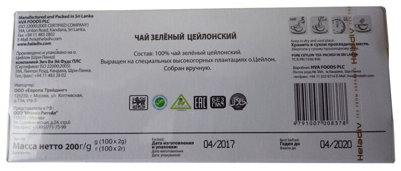Сервис сравнения цен СкидкаГИД предлагает сравнить цены на товар «Чай зеленый Heladiv Green Tea»