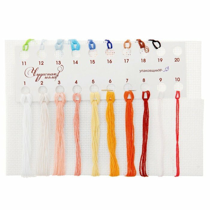 | В набор входит | хлопковая канва Aida 14 ct белого цвета, хлопковое мулине MAGIC NEEDLE, разобранное на органайзере (19 цветов), игла, цветная символьная схема, инструкция по вышиванию. |
