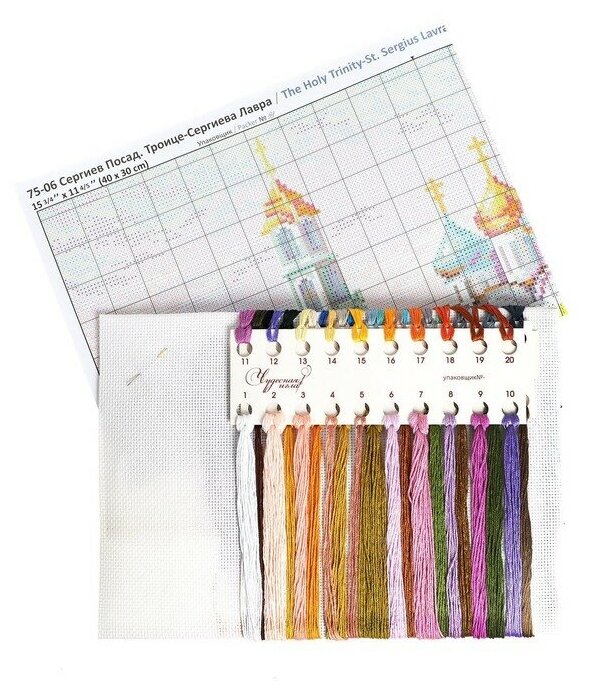 | В набор входит | хлопковая канва Aida 14 ct белого цвета, хлопковое мулине Gamma, разобранное на органайзере (50 цветов), игла, цветная символьная схема, инструкция по вышиванию. |