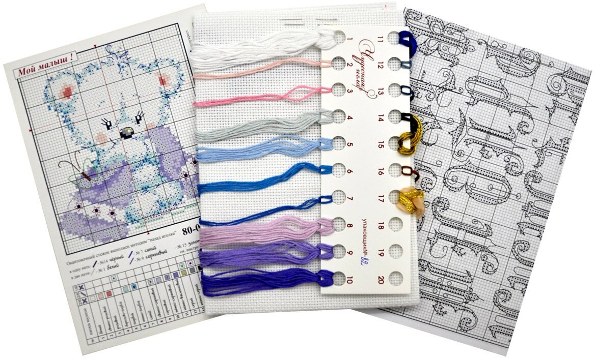 | В набор входит | хлопковая канва Aida 14 ct белого цвета, хлопковое мулине Gamma, разобранное на органайзере (16 цветов), мулине металлик, лента капроновая, бисер, игла, цветная символьная схема, инструкция по вышиванию. |