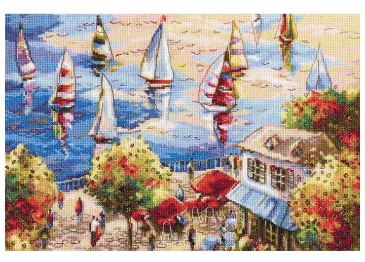 Техника: Счетный крест (Counted Cross Stitch) Размер: 37,5x25 см. В состав набора входит: канва для вышивания Aida 14 (100% хлопок) белого цвета, мулине фирмы DMC (Франция), разобранные на бумажном органайзере, игла, символьная схема, инструкция. Паспарту и рамка в комплект не входят. Обратите внимание: из-за индивидуальных настроек вашего монитора возможны расхождения в точности передачи цветов.