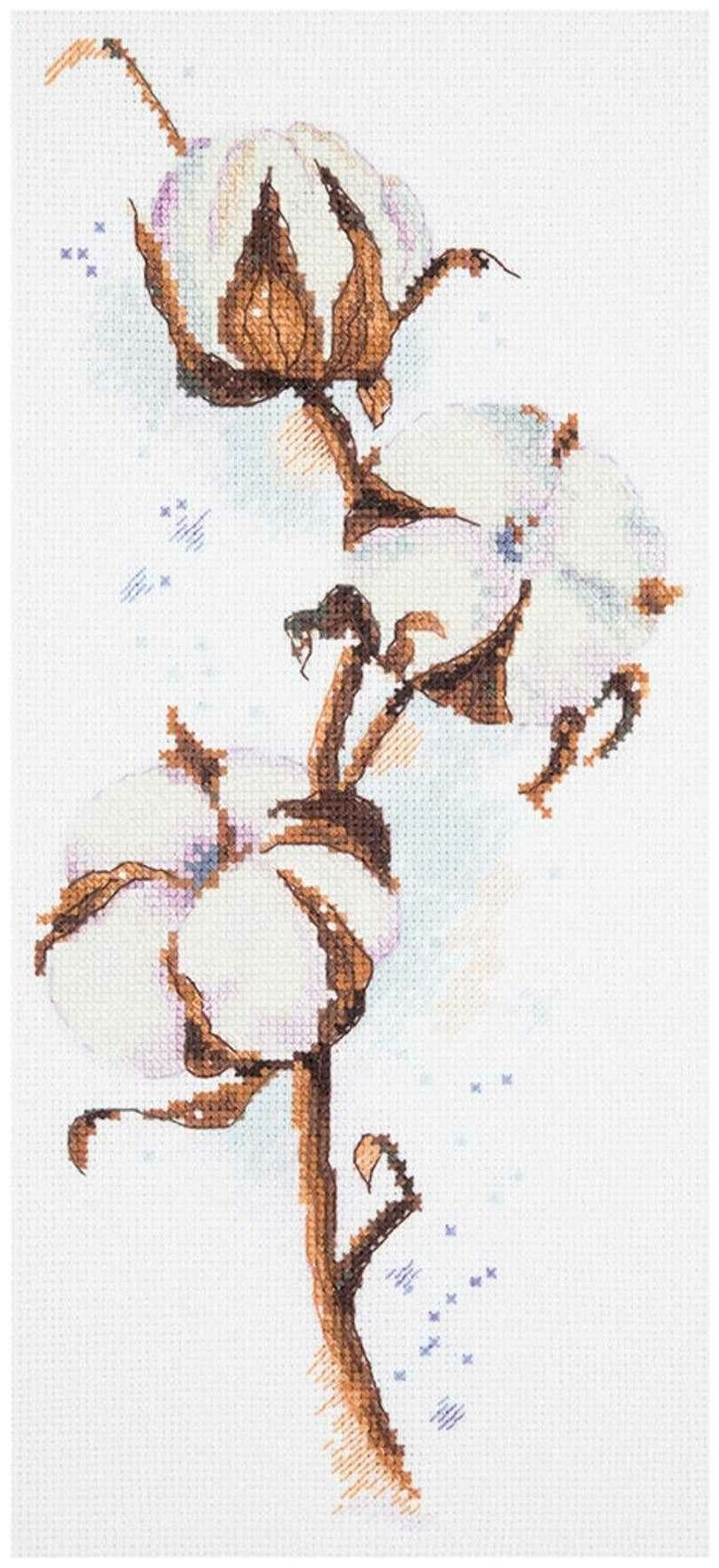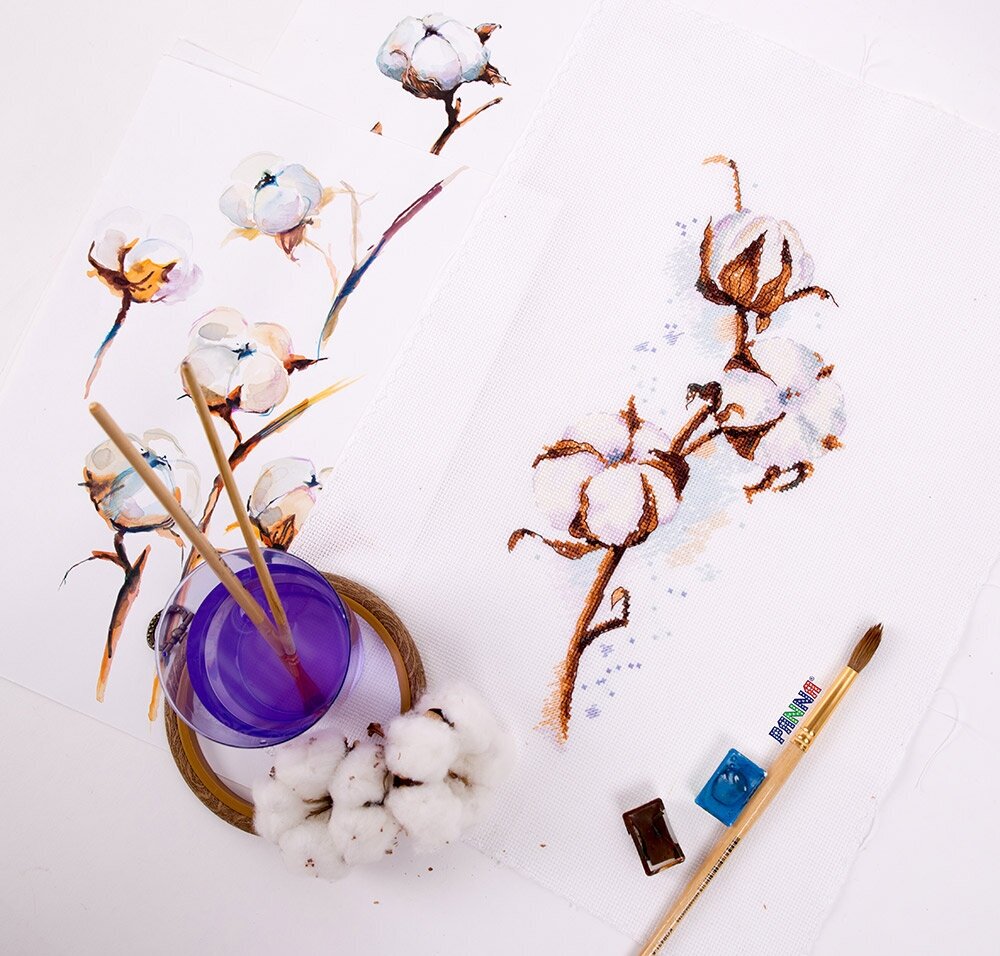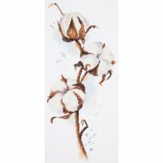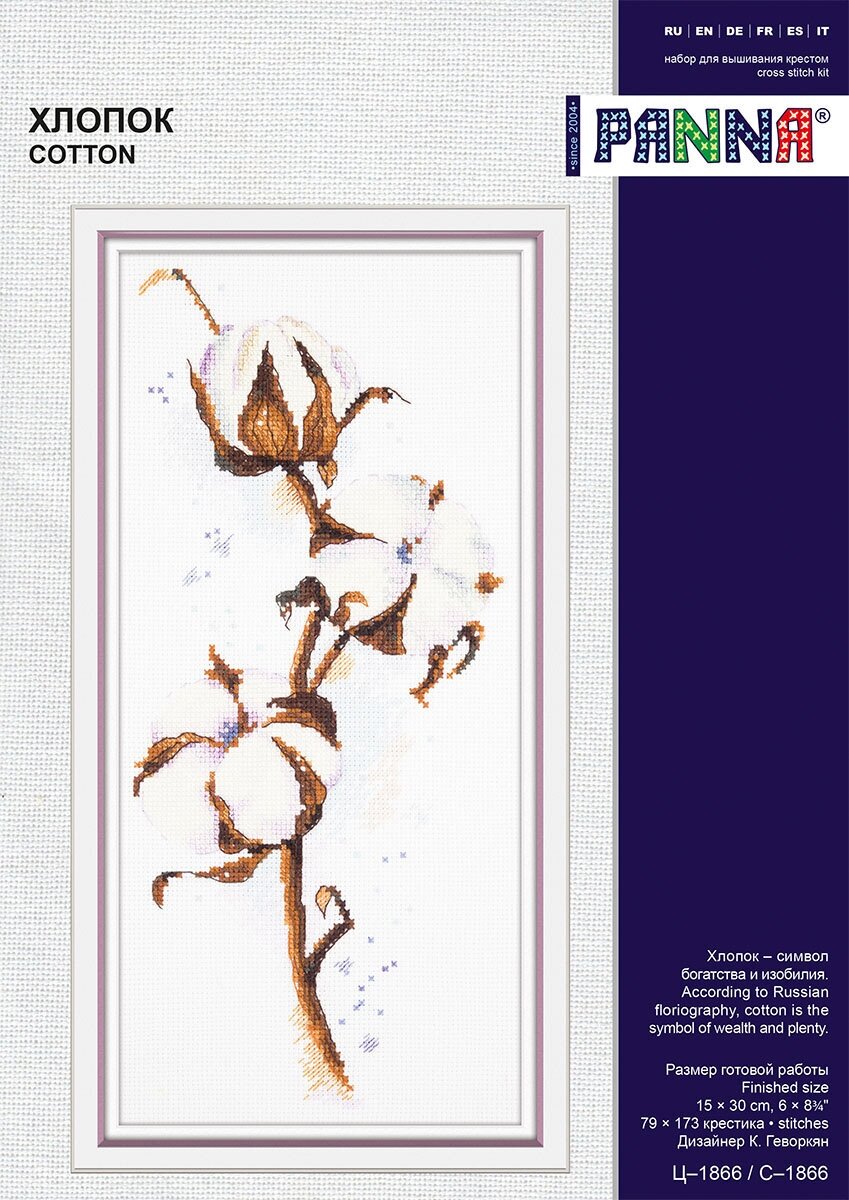 Техника: Счетный крест (Counted Cross Stitch) Размер готовой работы: 15х30 см. В состав набора входит: канва аппретированная Gamma К16 (Aida 16) белого цвета, специализированная игла игла с тупым концом для вышивания Gamma, хлопчатобумажные нитки мулине Gamma на держателе, подробная инструкция по вышиванию и схема. Паспарту и рамка в комплект не входят. В XVI веке один английский путешественник рассказывал, что он собственными глазами видел в Индии дерево, из каждого плода которого появлялся барашек с белой шерстью. - Из нее делают прекрасные ткани, - убеждал он пораженных слушателей и в доказательство показывал платье из ситца, которое можно было продеть сквозь перстень. Ну, а поскольку эта ткань еще не была известна в Европе, подобным "сведениям" верили и даже приводили их в школьных учебниках. Так европейцы впервые услышали о растении, названном хлопчатником. Обратите внимание: из-за индивидуальных настроек вашего монитора возможны расхождения в точности передачи цветов.