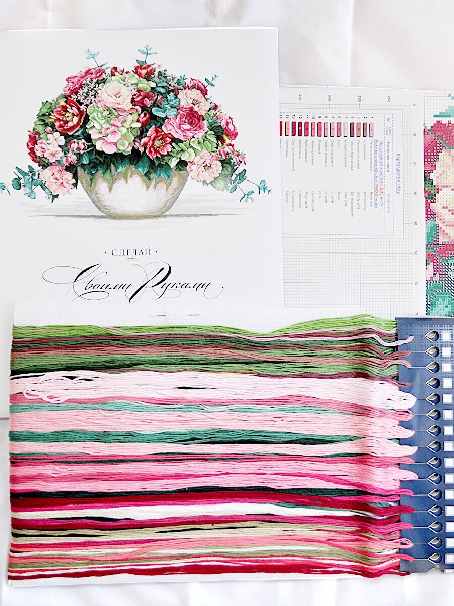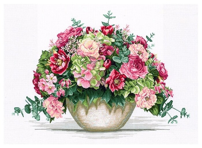 Чтобы вышивать крестиком, не потребуются особые навыки – достаточно проявить терпение, усидчивость и аккуратность. В наборе для вышивки крестом. Канва Aida 16 каунта позволяет вышивать небольшими стежками и прекрасно подходит для схем с подробной детализацией. Чтобы быстрее закончить вышивку и избежать возможных ошибок, позаботьтесь о правильном освещении. При необходимости используйте лупу.Набор для вышивки крестом 'Букет с гортензией' создан специально для увлеченных натур. Чтобы добиться отличного результата, натяните канву на пяльцы или станок, проявите аккуратность, точно следуйте схеме и инструкции. У вас получится картина с продуманными деталями и плавными цветовыми переходами.Совет: если вам не хватает опыта, сделайте разметку канвы, ориентируясь по схеме. Разметка поможет вам быстрее закончить вышивку и избежать возможных ошибок. В наборе: канва хлопковая Aida 16 ct, цветная символьная схема, хлопковые нитки мулине, игла, инструкция. Количество цветов: 55.