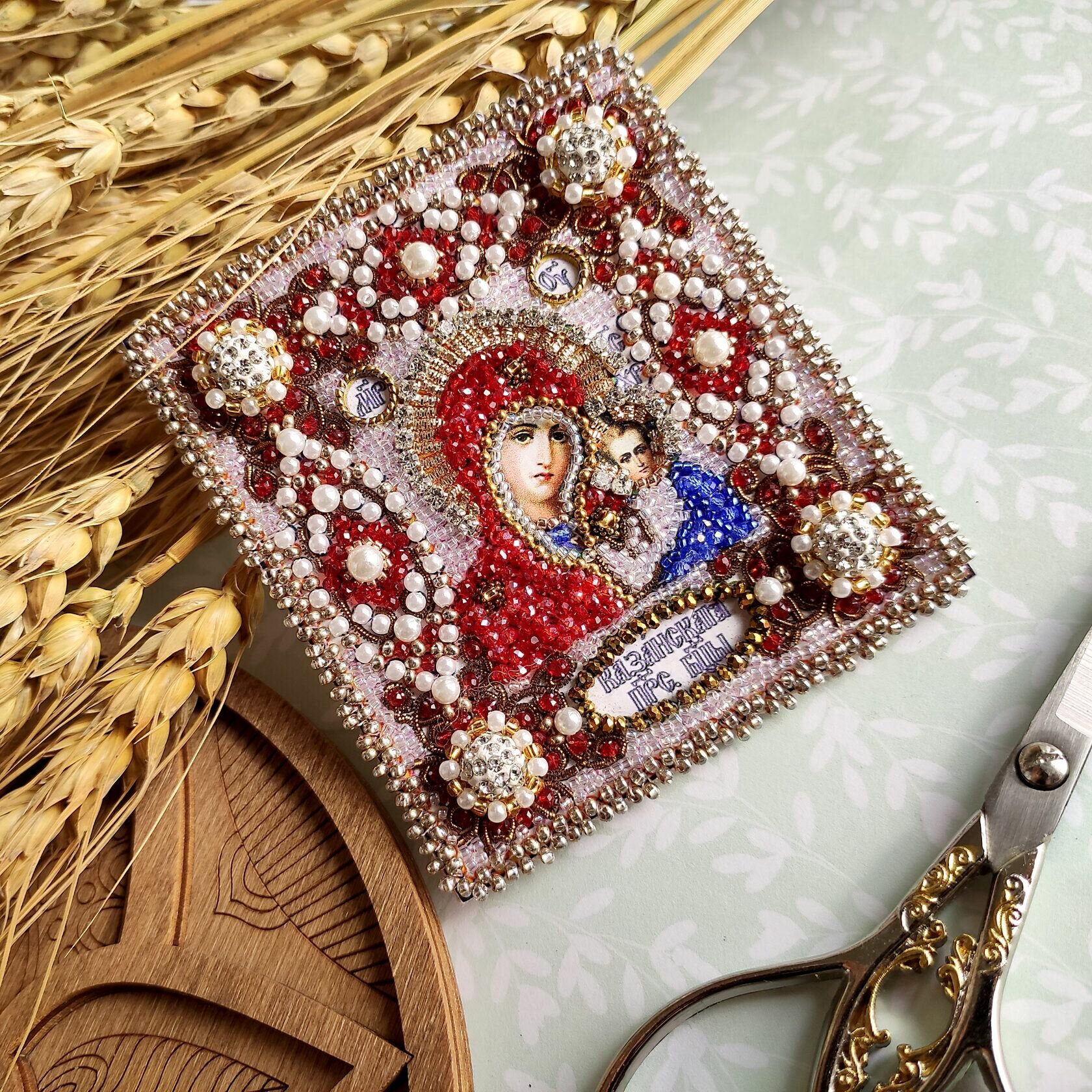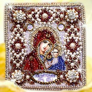 Набор для вышивания хрустальными бусинами и бисером студии вышивки "Образа в каменьях" "Богородица Казанская" (ювелирная), арт. 77-Ю-01. Любая рукодельница оценит по достоинству красоту и качество наших наборов. Вы получите небывалое удовольствие от вышивания, а результат превзойдет все ваши ожидания. Состав: два искусственных холста с нанесенной авторской схемой (лик и молитва), бусины "Шамбала", ювелирные хрустальные бусины 1 мм, ювелирный бисер тохо (Япония), MILL HILL (США) бисер (Чехия), винтажные звездочки (колечки), стазы на нити, металлическая тесьма, трунцал, канитель, игла для бисера, схема расположения бусин с инструкцией по отшиву. Наборы выпускаются с благословления церкви. Размер 7,5*8,5. Прекрасный подарок любимому папе, дедушке, мужу, любимой девушке, дочери, сестре, свекрови, коллеге, тете.